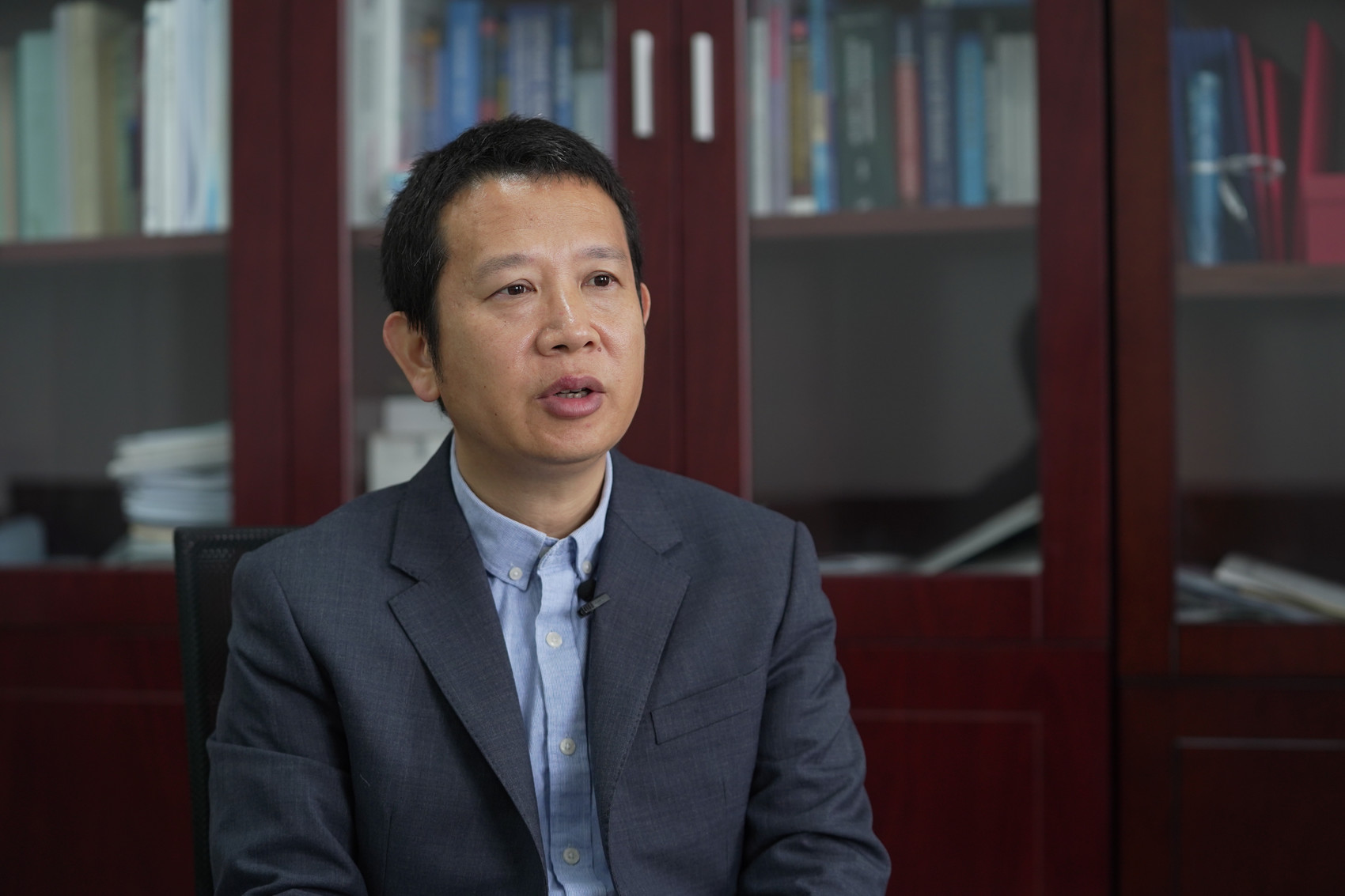 戴靠山教授接受记者采访。