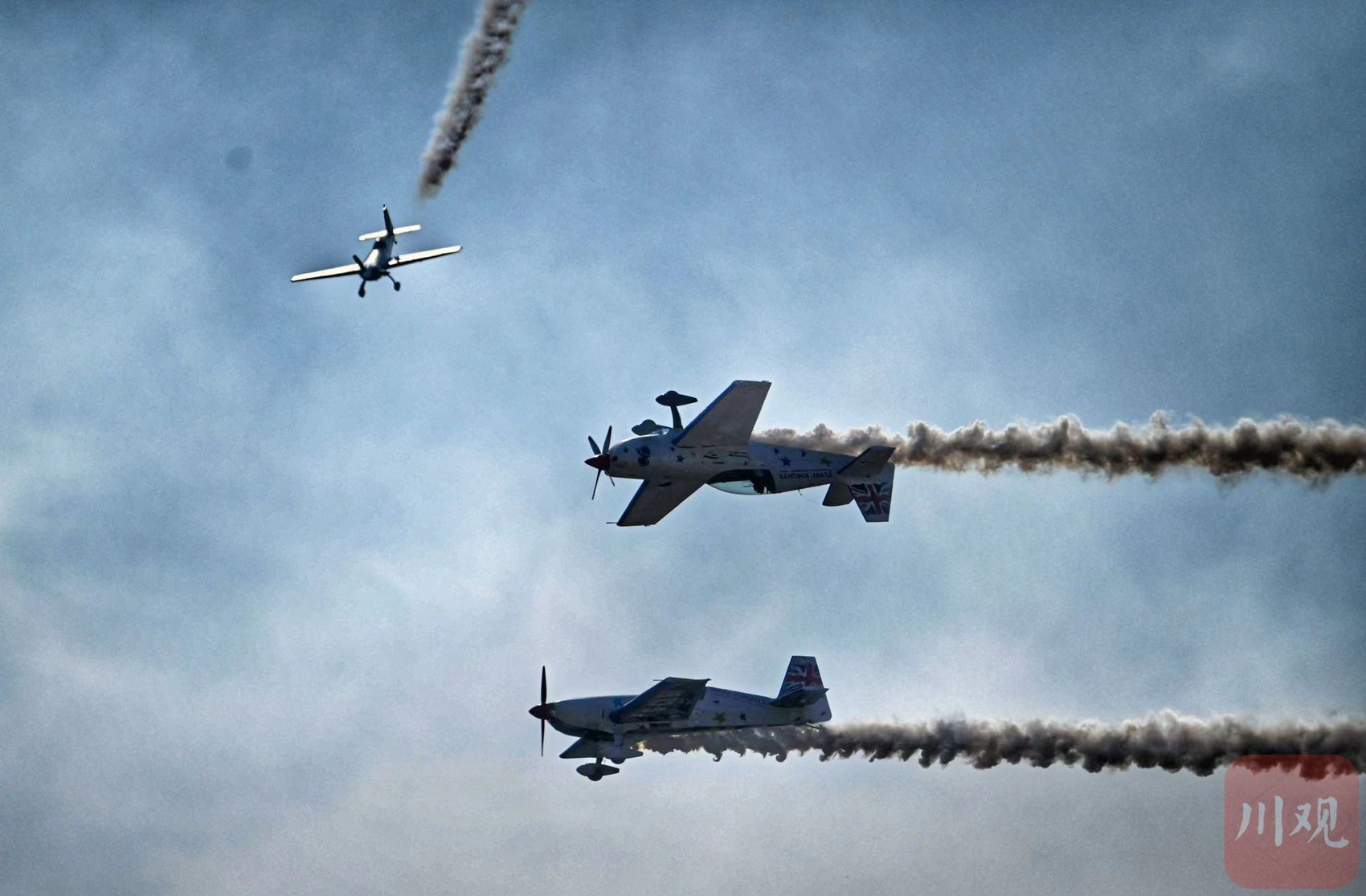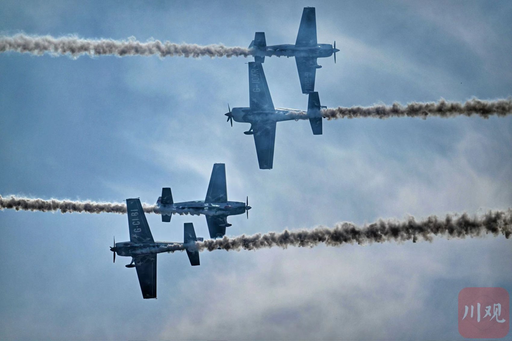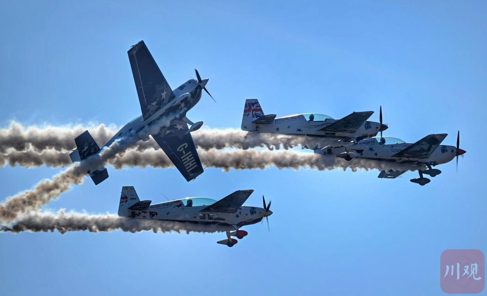在2023亚洲通用航空展的现场,来自国内外的飞行表演队先后为本届航展开幕进行为时70分钟的精彩飞行表演。不仅有来自欧洲的“穿越骑士”飞行表演队,还有中国“山河”飞行表演队和女特技飞行员为在场观众带来每天70分钟的精彩表演。