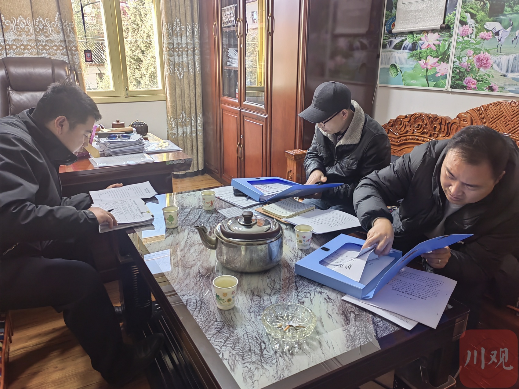 炉霍县纪委监委工作人员监督检查“第一议题”制度落实情况 (图片来源:炉霍县纪委监委)