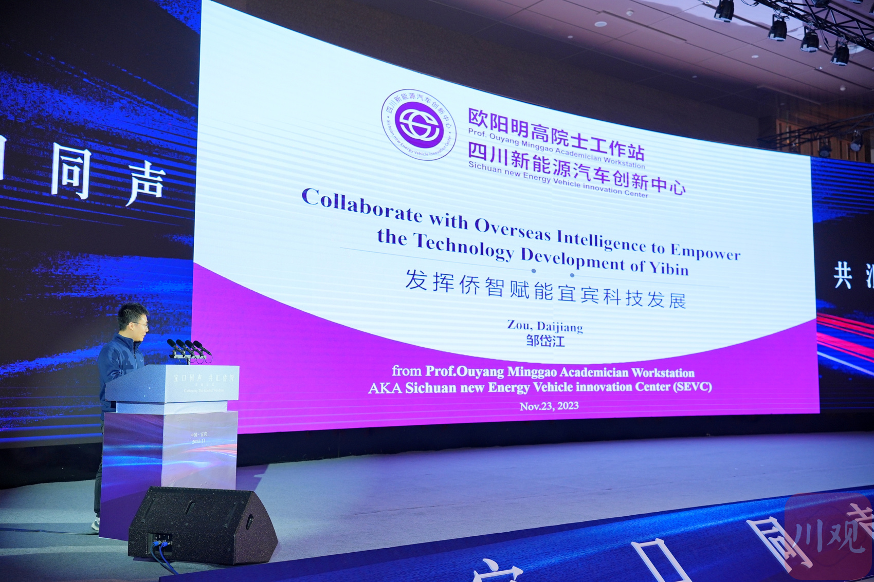 活动现场进行了宜宾视频推介,向嘉宾展示了宜宾悠久的人文历史、当前的城市发展现状和区域面临的战略机遇等多个方面,帮助嘉宾深入解析了区域价值,分享了宜宾未来的发展前景和机遇。美国硅谷企业家访问团团长尹集宪、欧阳明高院士工作站新能源大数据业务负责人邹岱江先后作了主题演讲,分别从在美华人、归国留学生角度,分享如何汇聚侨界智慧,为宜宾高质量发展贡献侨界的力量。