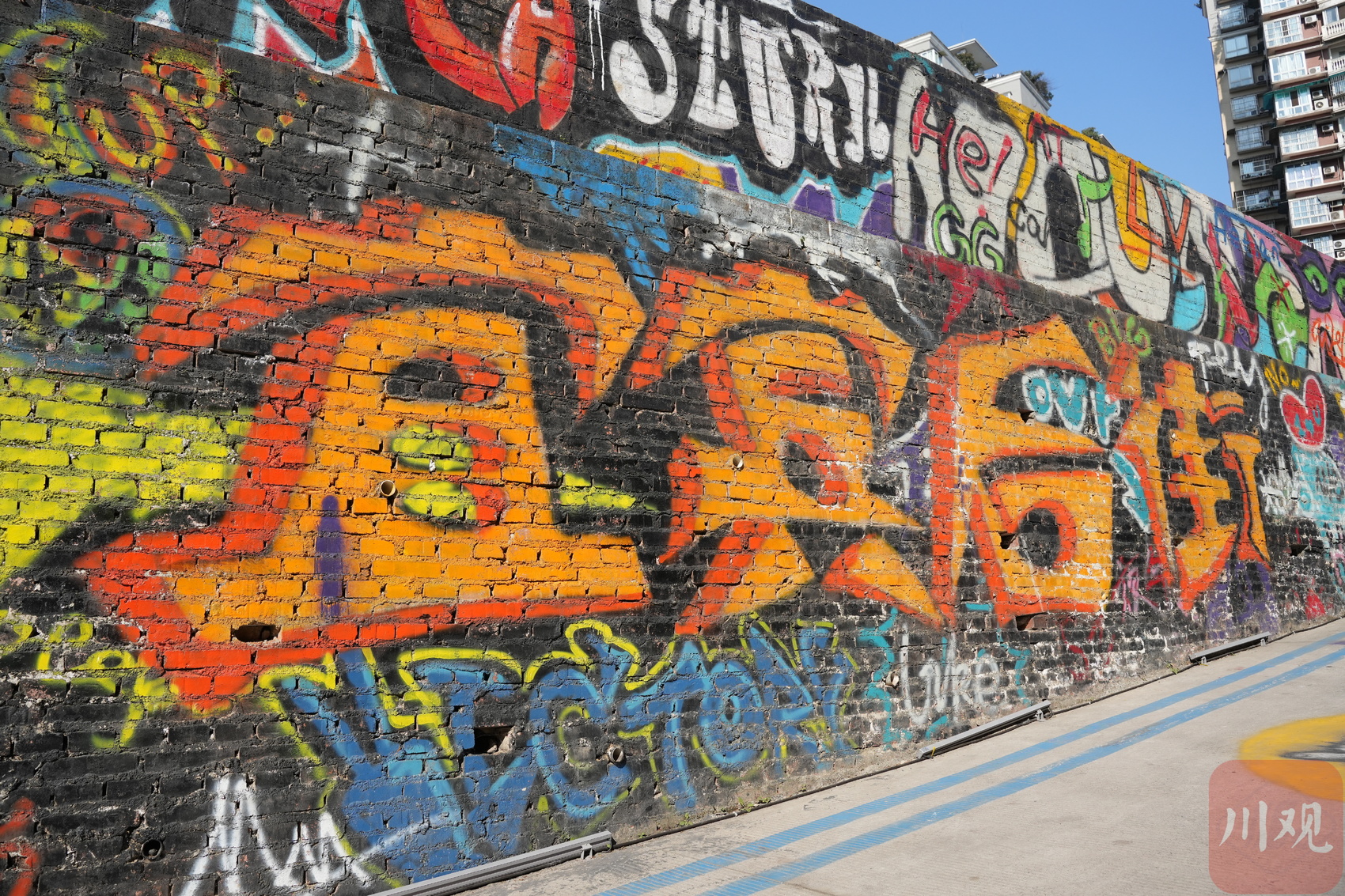 宜宾后街原是平平无奇的砖面墙,摇身一变,一幅栩栩如生的人物、动画涂鸦跃然眼前,为这条道路带来了更具有年轻活力的色彩。极具故事感的外墙,斑驳的树影,再加上五彩的涂鸦,使老街巷活力“上新”,散发出独特的文艺气息。