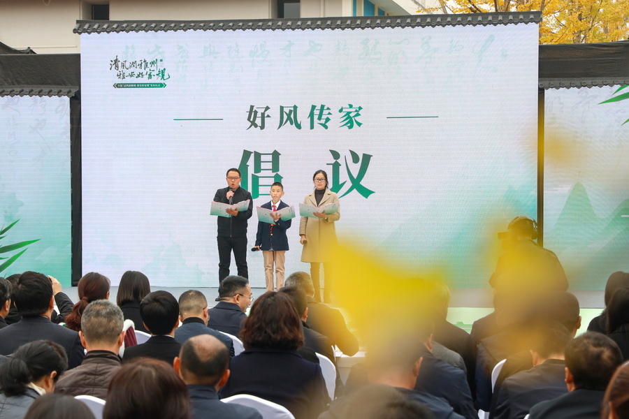 仪式上,参加活动的嘉宾为被评为十佳“清风润雅州 雅安好家规”的10个家庭代表颁奖,获奖家庭代表宣读了《好风传家倡议书》,芦山县乐氏家庭代表、天全县陈怀炯家庭代表在现场与大家分享了各自良好的家风和严格的家规家训。