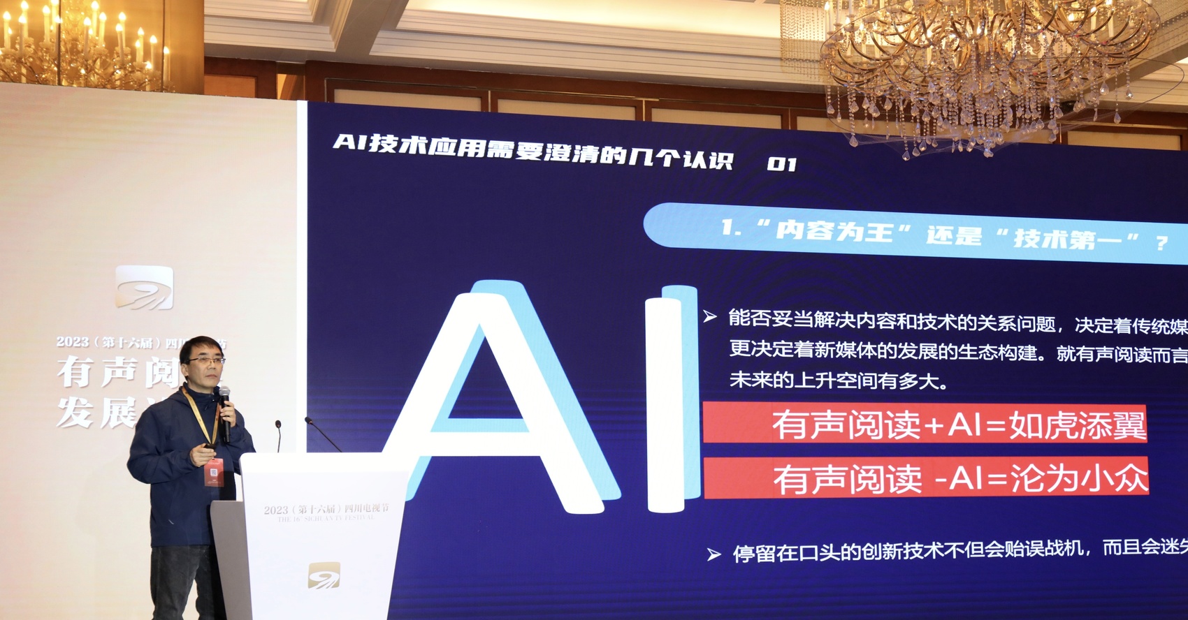 “在媒体论坛里不谈人工智能,可能都不好意思了。”“内容为王还是技术第一,现在看来还要重新审视”……11月24日,成都世纪城国际会议中心,在2023(第十六届)四川电视节的有声阅读发展论坛上,多位业界专家学者、知名机构负责人就新媒体环境下的有声阅读发展前景进行交流。