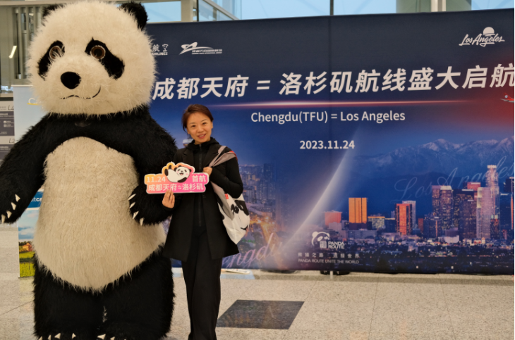 11月24日21时许,载有192名旅客的四川航空3U3837次航班从成都天府国际机场起飞前往洛杉矶,标志着时隔三年后,成都直飞美国客运航线正式复航。成都是我国西部地区率先恢复开通直飞美国客运航线的城市。