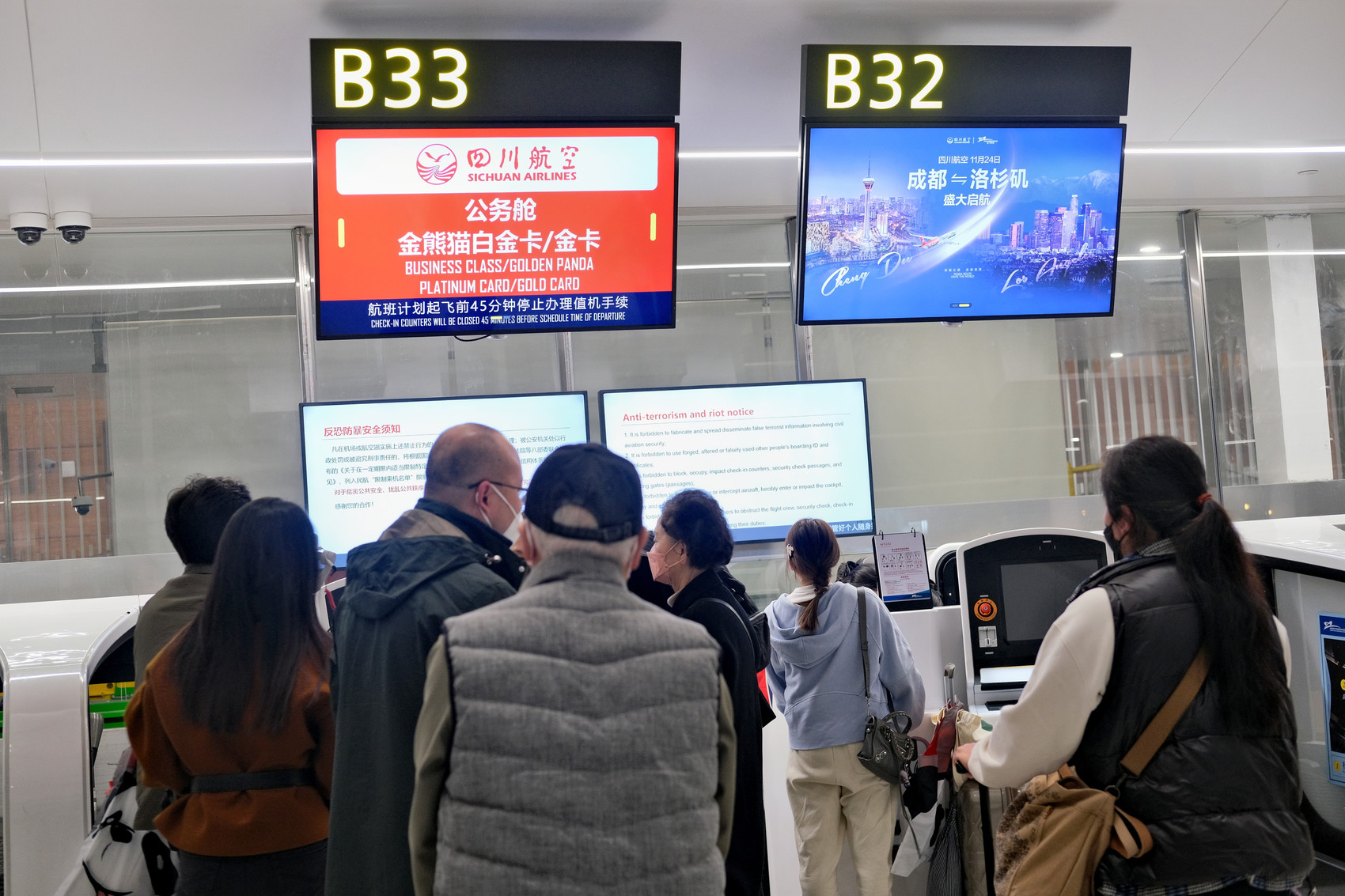 当天17时开放值机后,旅客陆续到来,脸上洋溢着欢喜。“能够从成都直飞,那可太方便了,终于不用各种转机了!”成都人王虹极为高兴。因为工作原因,她经常出国,以前去美国需要从上海、北京或香港等地转机,单程需要20个小时以上;现在能直飞了,只需14个小时就能到洛杉矶,节省时间不说,也免去了很多折腾。
