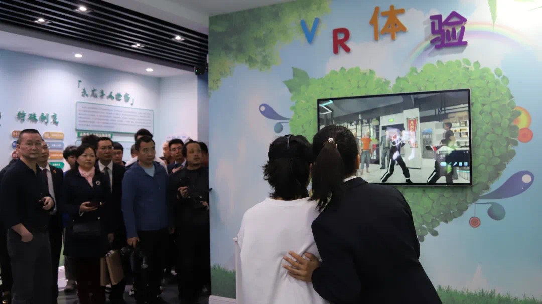 基地内设置“寄语青春”“明德崇法”“法伴青春”“成长烦恼”“护航花季”等多个展区,可以观看法治视频课件,体验电子翻书、VR互动、模拟吸毒人脸变化、法律知识抢答等。