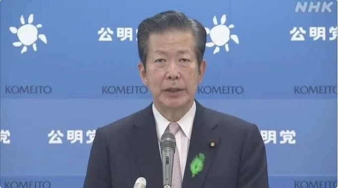 日本公明党党首山口那津男(资料照片)。图据日本NHK报道截图