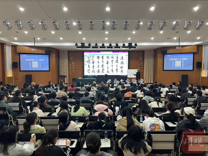 11月25日,由四川日报全媒体主办,四川大学党委学生工作部、校团委、研究生工作部、图书馆协办的“天府文艺讲坛”在四川大学(望江校区)文理图书馆与观众见面。北京大学中文系教授、博士生导师程郁缀来到现场,为大家带来“古典诗歌与人文精神”的主题讲座,和观众共同领略诗词背后的文化内涵。