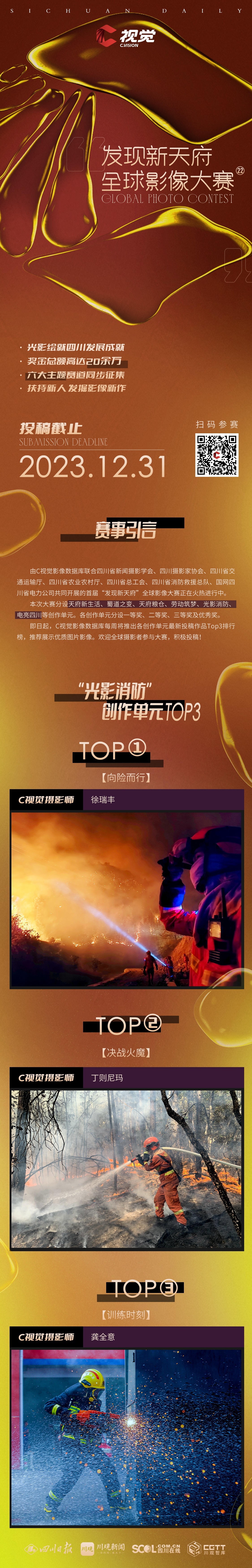 由C视觉影像数据库联合四川省新闻摄影学会、四川摄影家协会、四川省交通运输厅、四川省农业农村厅、四川省总工会、四川省消防救援总队、国网四川省电力公司共同开展的首届“发现新天府”全球影像大赛 (以下简称大赛) 正在火热进行中。