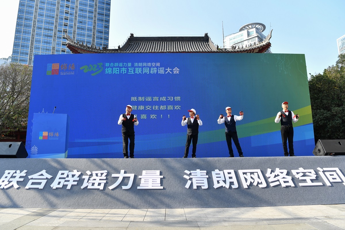 当天,2023绵阳市互联网辟谣大会在此举行,同步启动绵阳市网络辟谣联动机制,并由主持人与热心市民进行答题互动,提升大家识别互联网谣言的本领。