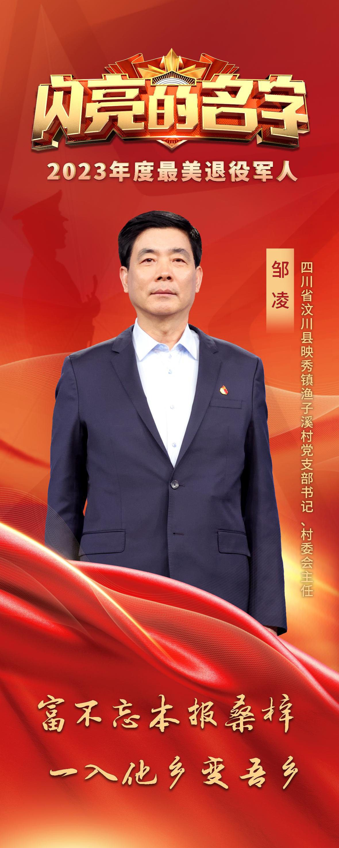 近日,中共中央宣传部、退役军人事务部、中央军委政治工作部向全社会发布2023年度“最美退役军人”先进事迹。四川省汶川县映秀镇渔子溪村党支部书记、村委会主任邹凌,荣获2023年度“最美退役军人”称号。