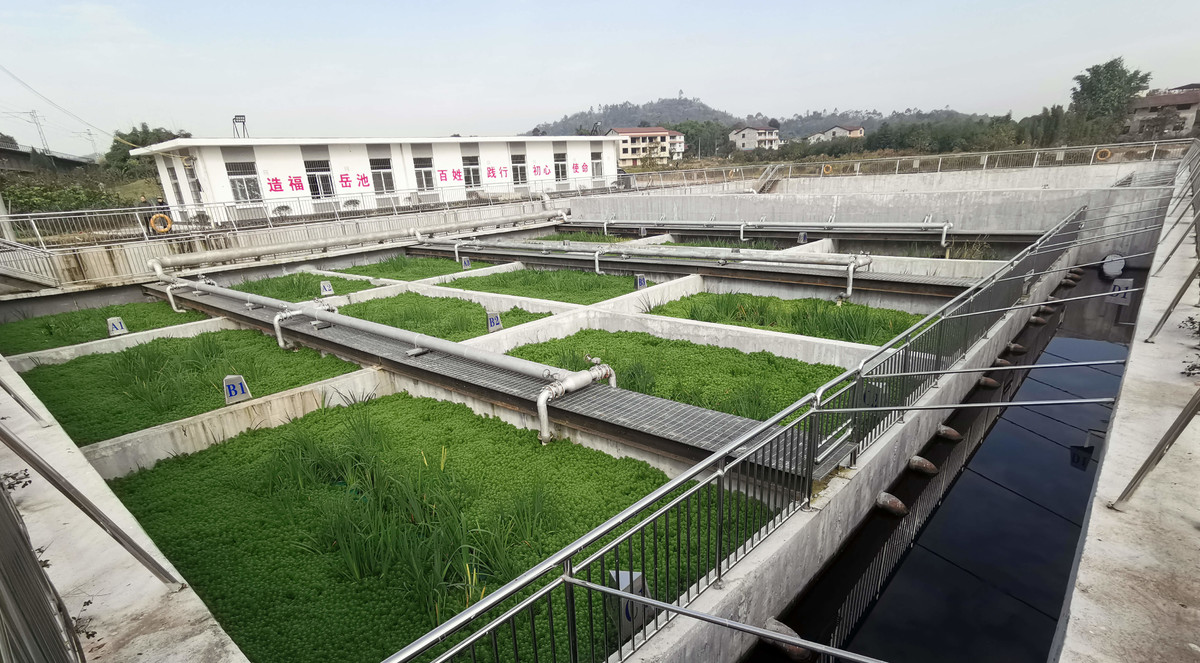 位于九龙街道附近的人工湿地,服务的范围是周边六个城乡结合部村落,附近没有工业区。排放而来的主要是污水,且已经简单沉淀,主要污染物是氮和磷。所谓分环节处置,主要指靠植物在滤池中吸附污水中的氮,以及靠药剂除磷。