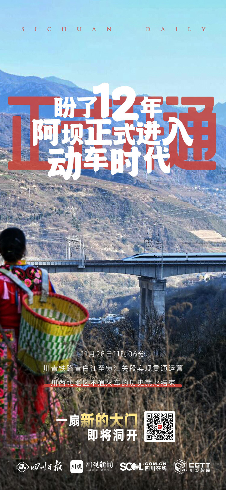 11月28日11时06分,随着C6008次动车从茂县站驶出,新建的川青铁路青白江至镇江关段实现贯通运营,结束了川西北地区不通火车的历史。该车55分钟后将抵达成都东站,由此,阿坝藏族羌族自治州正式进入动车时代。