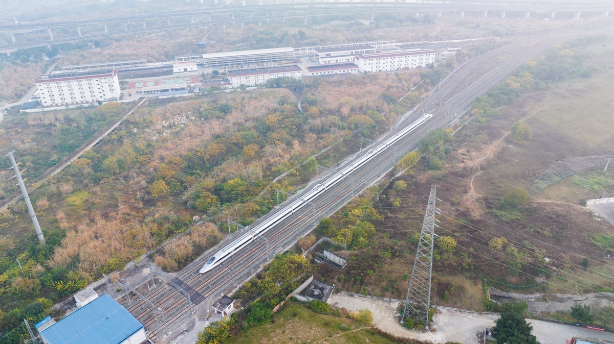 川青首趟镇江关载客交路CRH2G高寒动车组出库航拍。成都动车段供图