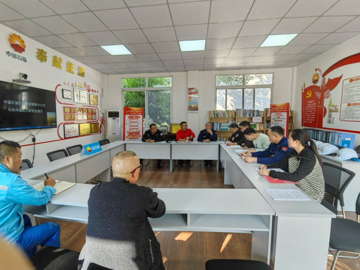 11月27日,汉源县应急管理局工作人员来到中国石油四川雅安销售分公司乌斯河油库,在听取入库告知、按要求穿上防静电服后,对消防通道,站房、泵房等之间的间距、消防设施、安全阀、压力阀等部位进行安全检查。
