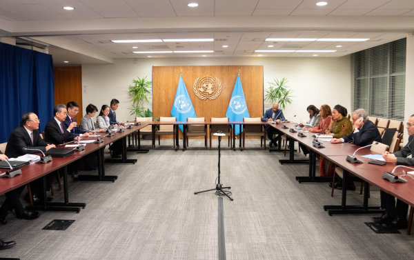 当地时间2023年11月28日,中共中央政治局委员、外交部长王毅在纽约联合国总部会见联合国秘书长古特雷斯。