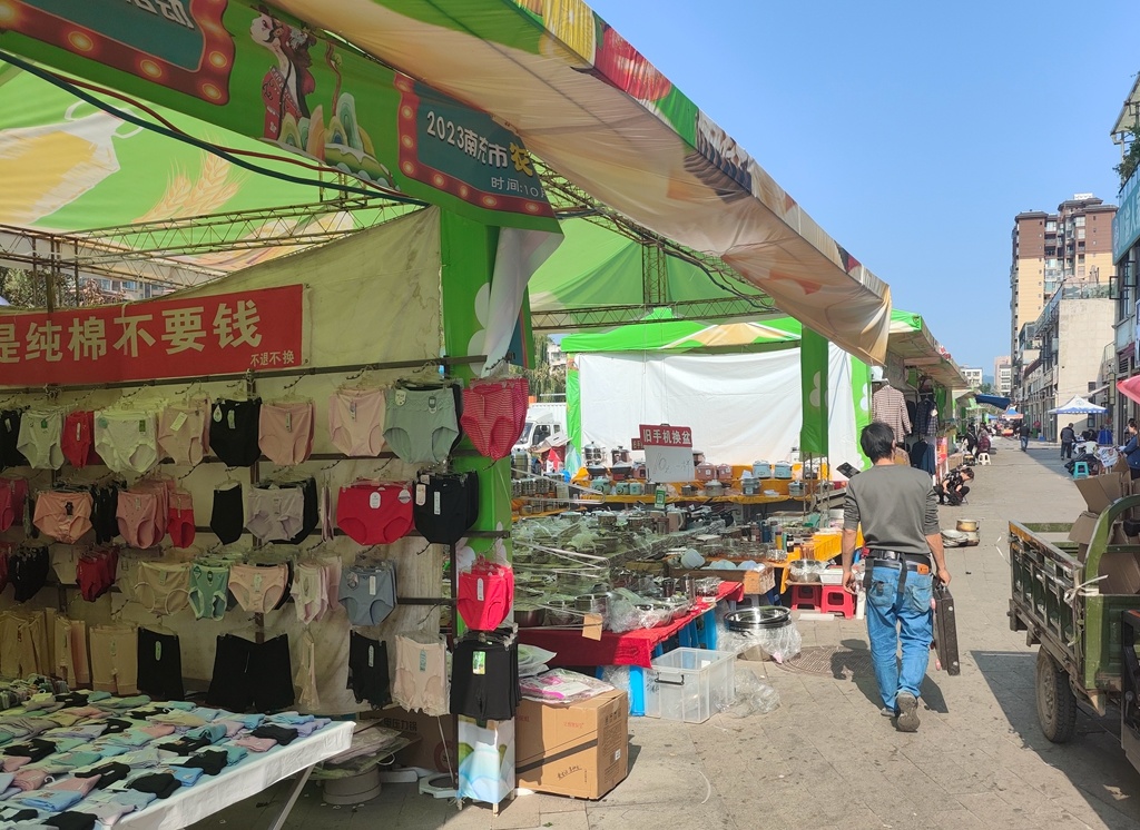 反而是衣服、袜子、拖鞋等轻工业品占据了大部分摊位,“有点名不符实”。