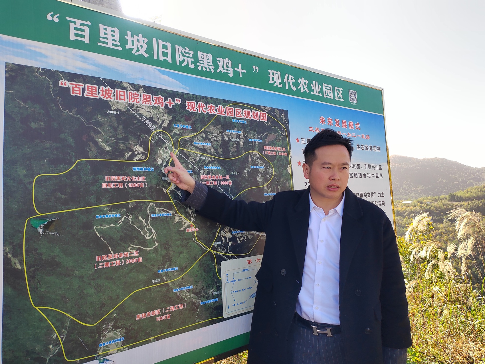 在养殖基地的一角,刘晓岗给记者展示了一张“百里坡旧院黑鸡+”现代农业园区发展规划图。图中,森林小木屋、农业体验接待中心、旧院黑鸡文化体验馆等设施清晰标注。“农业只有走一二三产业深度才能赢得市场!”刘晓岗诉说着合作社未来的发展目标:以“旧院黑鸡文化”为主题发展农业乡村体验式旅游、加工旧院黑鸡(蛋)相关旅游食品。“届时,我们还是主打一个免费住森林小木屋、免费吃黑鸡、免费拾鸡蛋,为企业发展聚人气。”他笑道。