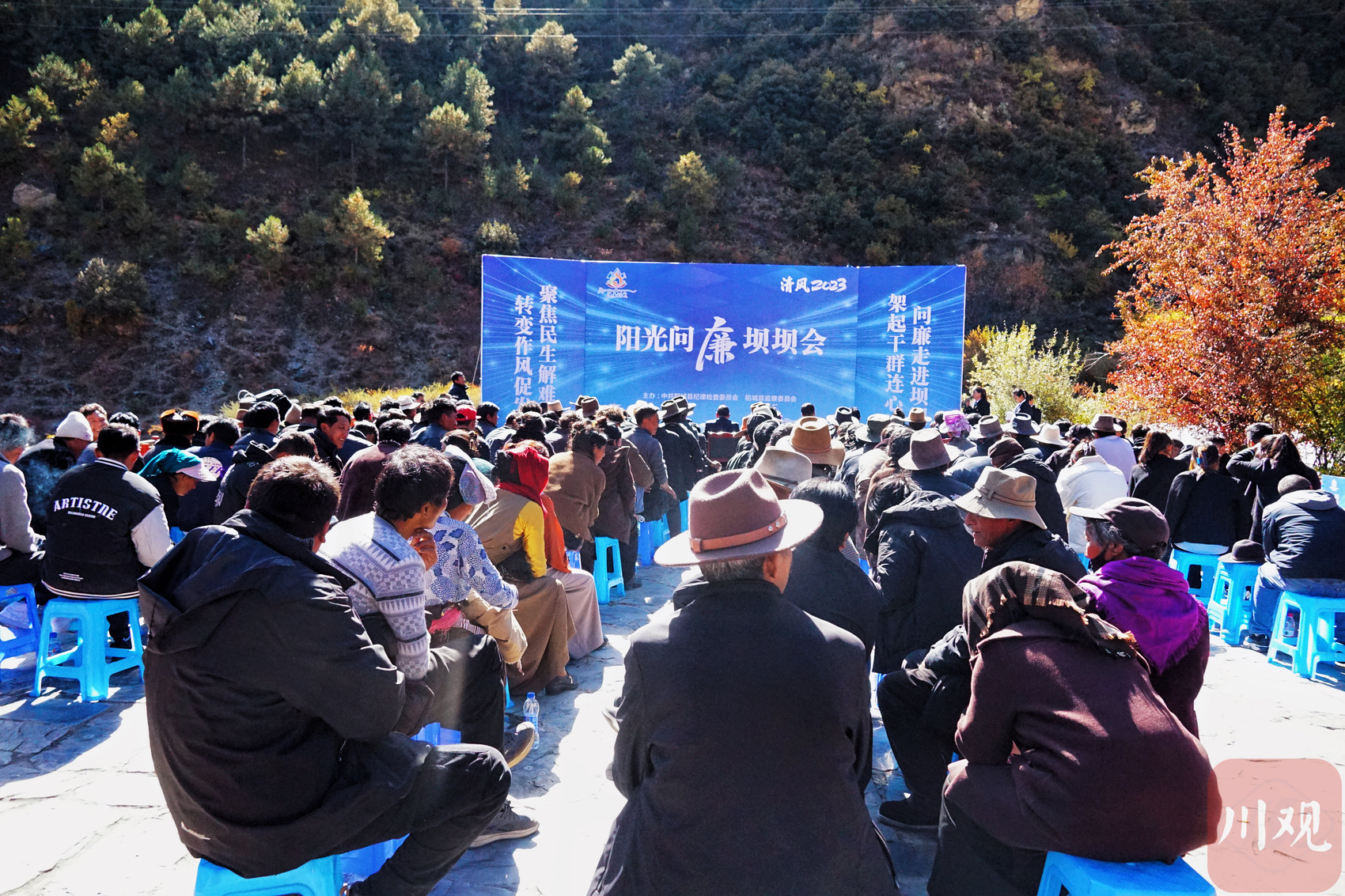 近日,稻城县纪委监委“阳光问廉·坝坝会”在巨龙乡开展,围绕违反值班工作要求、村集体“三资”使用不规范、违规发展党员“带病入党”等方面进行现场问廉,县纪委监委、县委巡察组、县委组织部、县乡村振兴局等部门及巨龙乡全体党员、干部职工、党风政风监督员、群众代表等180余人参加此次“阳光问廉·坝坝会”。