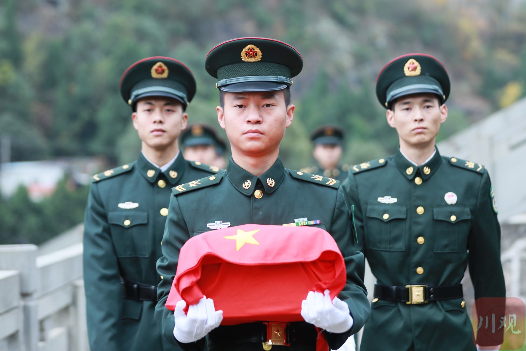 9时20分,《思念曲》再度响起起灵开始,礼兵护送刘光荣烈士骨灰盒至墓区安放,烈士终归长眠故土。