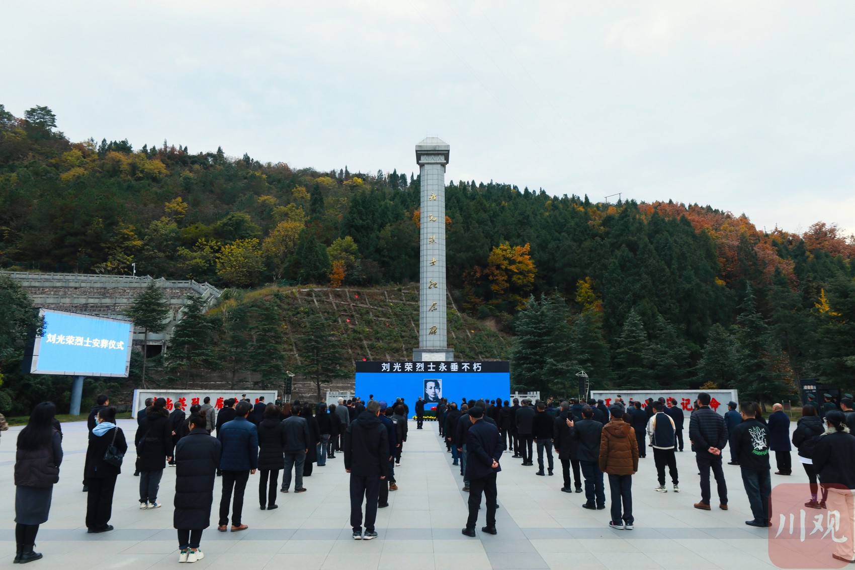 11月29日,刘光荣烈士安葬仪式在广元市烈士陵园举行。埋骨他乡74年的刘光荣烈士英灵终于回到故里安息。