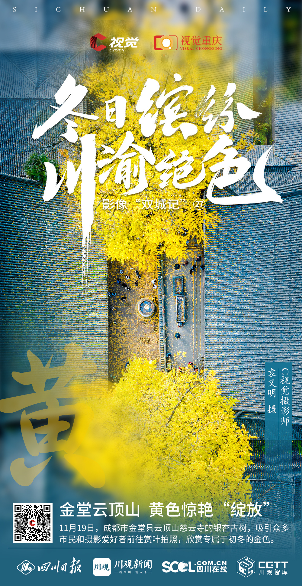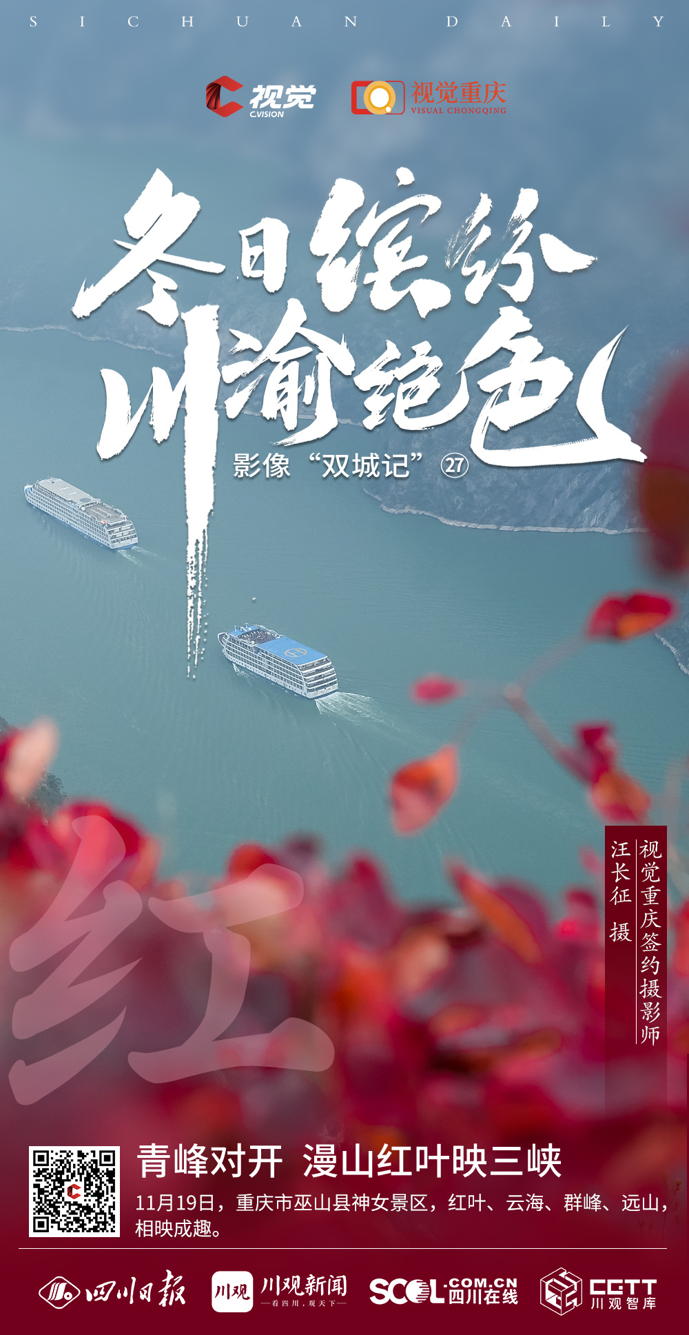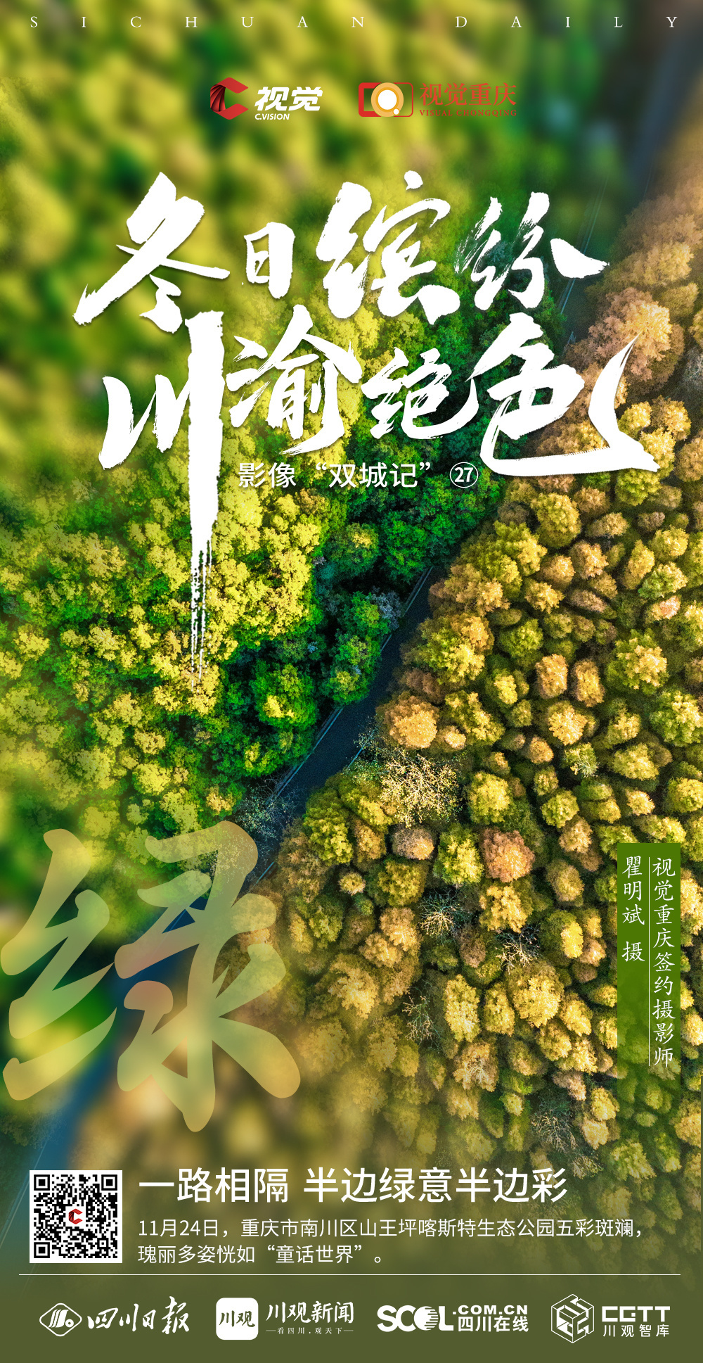 此时的川渝两地,红叶满阶,叶半青黄,锦绣交织间透出不输缤纷春景的多彩冬景,让季节尽情绚烂。