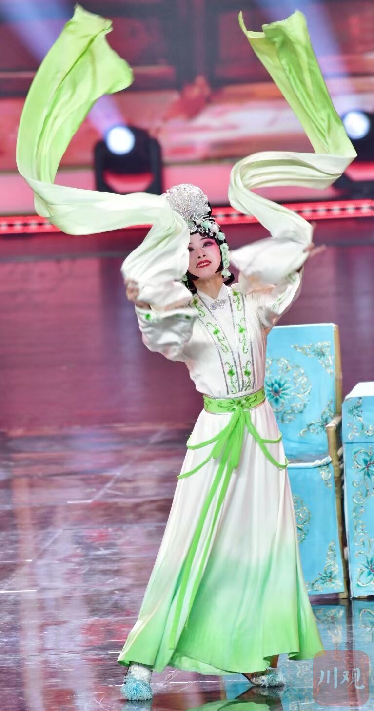 锣鼓声声,好戏开场。伴随着戏曲舞蹈《你从历史中走来》汇报演出拉开帷幕。以时间发展为线索,以河流点亮为表现方式,通过戏曲舞蹈、变装、全息技术等形式,现场穿插戏歌《我是中国人》《天女散花》等节目,川剧四个重要流派的创新演变艺术化地展现于眼,一幅川剧约300年经久不衰、生生不息的发展图景徐徐展开。