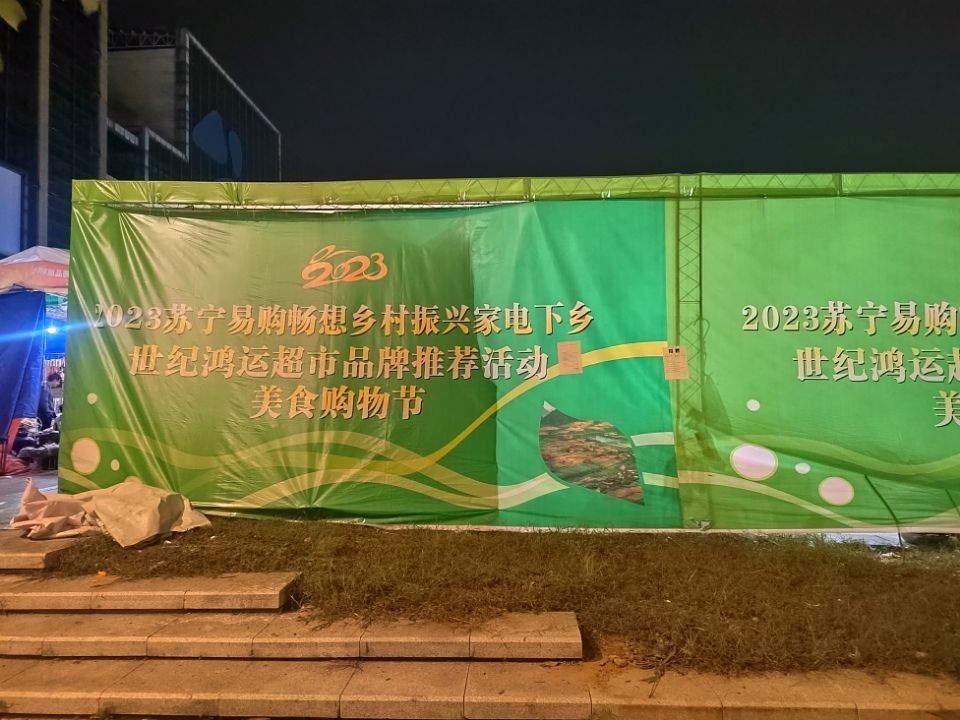 跟随摊主们的指引,记者来到了这个新展销活动现场。新展销会的名字起得很长——“2023苏宁易购畅想乡村振兴家电下乡 世纪鸿运超市品牌推荐活动 美食购物节”。然而,展销现场并未摆放任何家电,也未看到冠名超市的推荐品牌产品。“2023南充市农产品展示展销活动”中不少摊位“改头换面”出现于此,依然在销售鞋袜、厨具、药品保健品等产品。