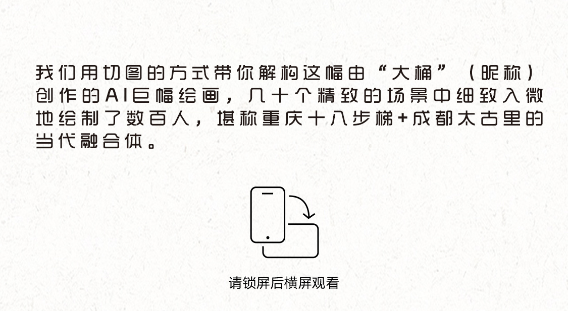 看到这幅作品就让我想起当年的油画家程丛林,他的作品总是恢弘巨制,善于用画笔去解构一个时代,去描绘时代环境影响下的芸芸众生,笔触之细腻,人物勾勒之精准,可谓是百人百态,绝不雷同,让人看之新生震撼,产生共鸣,不得不佩服画家对生活、对社会的观察是如此细微,大桶老师的作品亦是如此。虽然AI画师还难以登堂入室,与摄影师和画家一样成为凡人仰望的大神,但随着科技的进步,和大众对艺术的理解不再停留于传统思维,AI终将有一天会成为与摄影、绘画,三足鼎立的艺术,相信这一天不会太遥远。