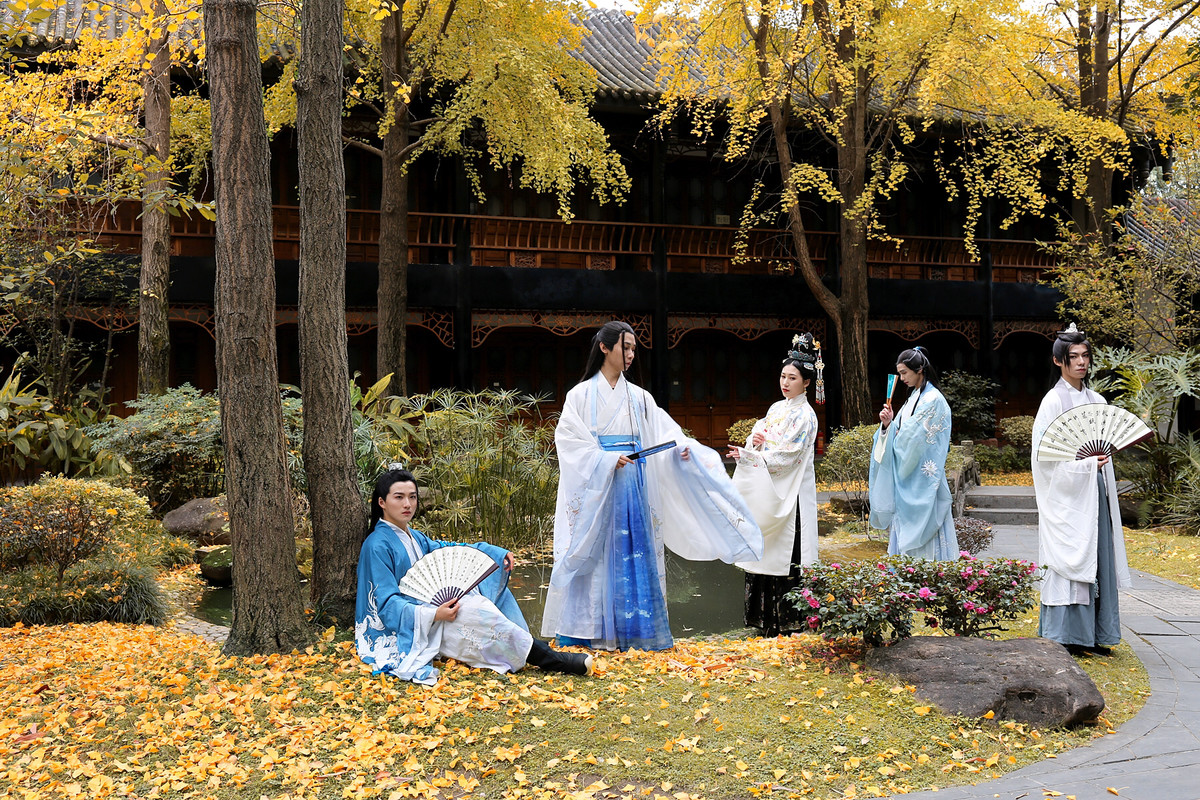 11月22日,汉服出行日,四川省汉服协会与成都市望江楼公园主办“一袭华裳同行日·竹林听风望江楼”活动。