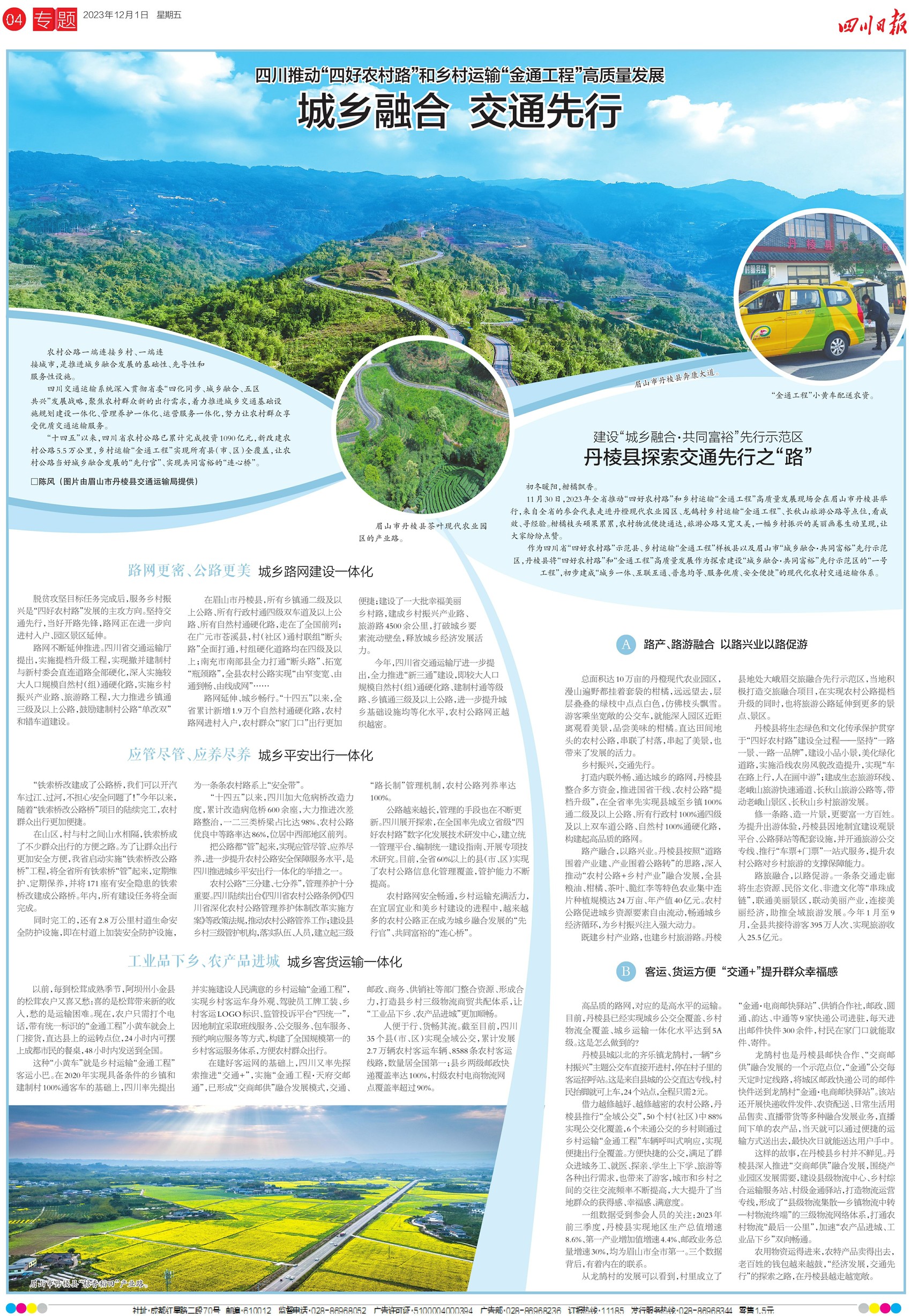 12月1日,四川日报整版关注“四川推动‘四好农村路’和乡村运输“金通工程’高质量发展”情况,推出《城乡融合 交通先行》报道。详细报道如下: