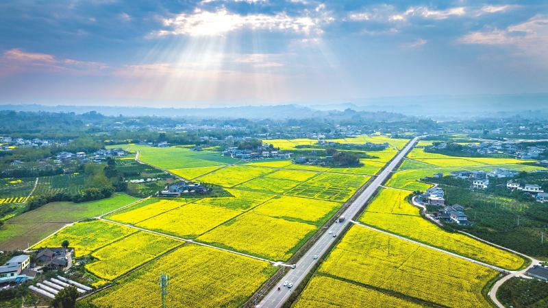 乡村振兴,交通先行。打造内联外畅、通达城乡的路网,丹棱县整合多方资金,推进国省干线、农村公路“提档升级”,在全省率先实现县城至乡镇100%通二级及以上公路、所有行政村100%通四级及以上双车道公路、自然村100%通硬化路,构建起高品质的路网。