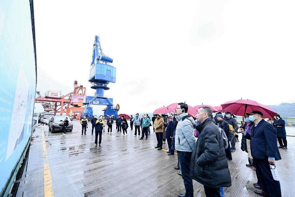 参会嘉宾们调研参观了泸州港国际集装箱码头