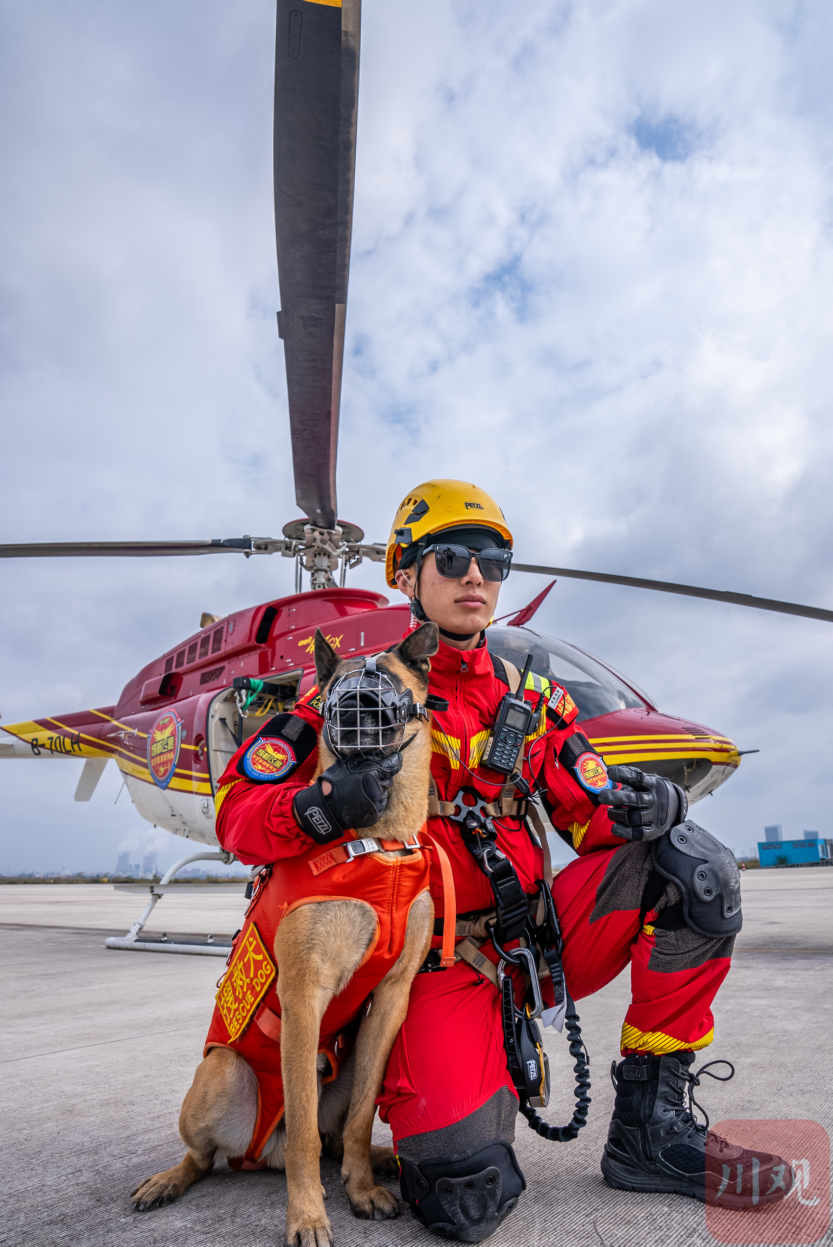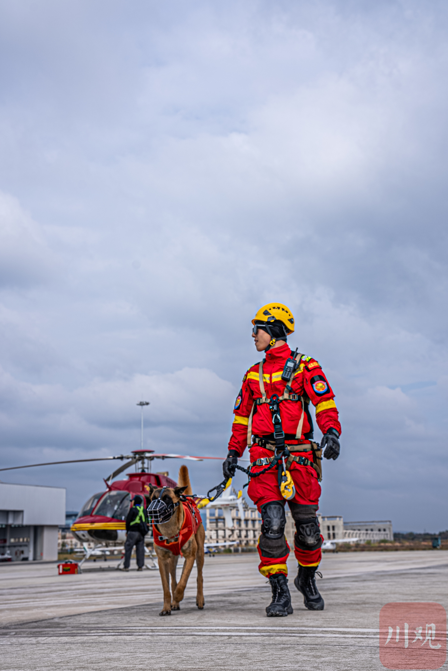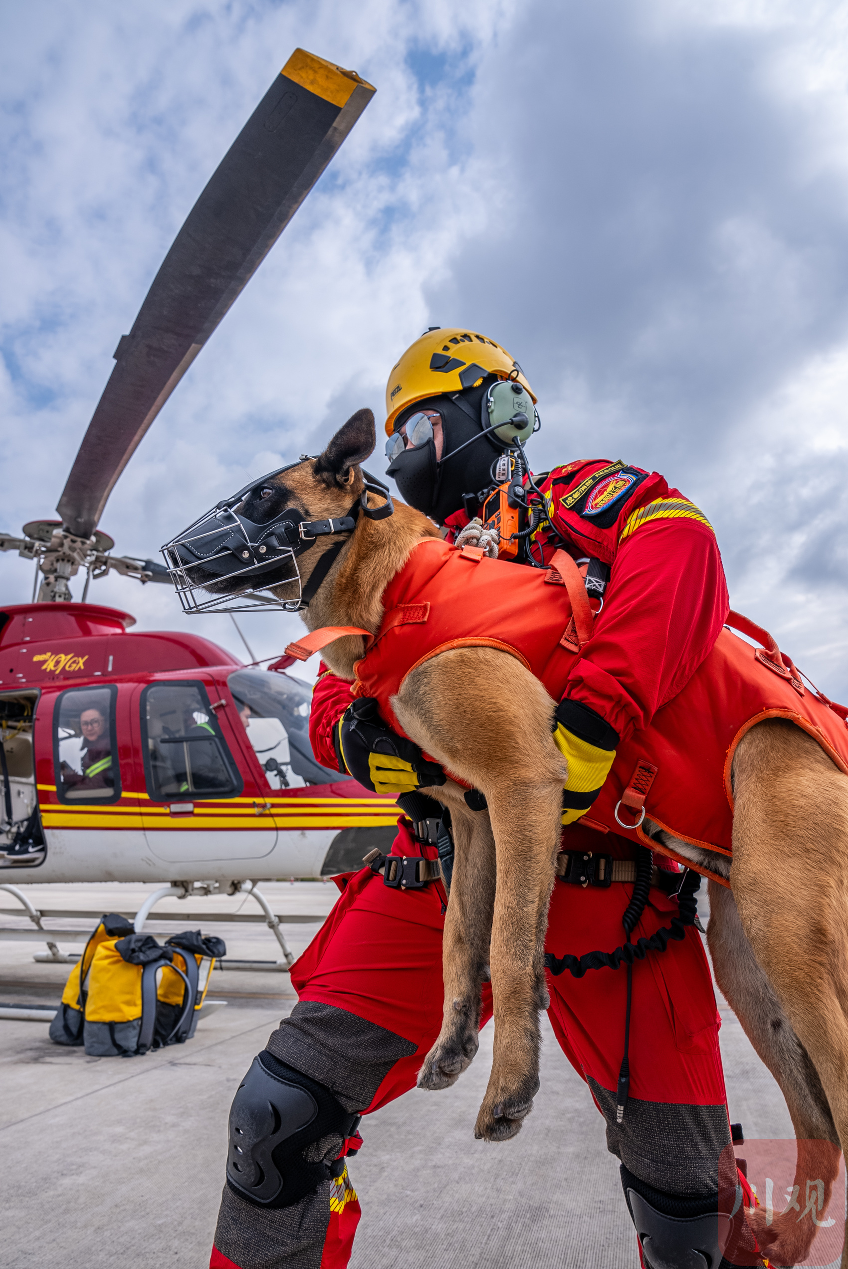 索降组队员和搜救犬准备登机 摄影 陈旻翔