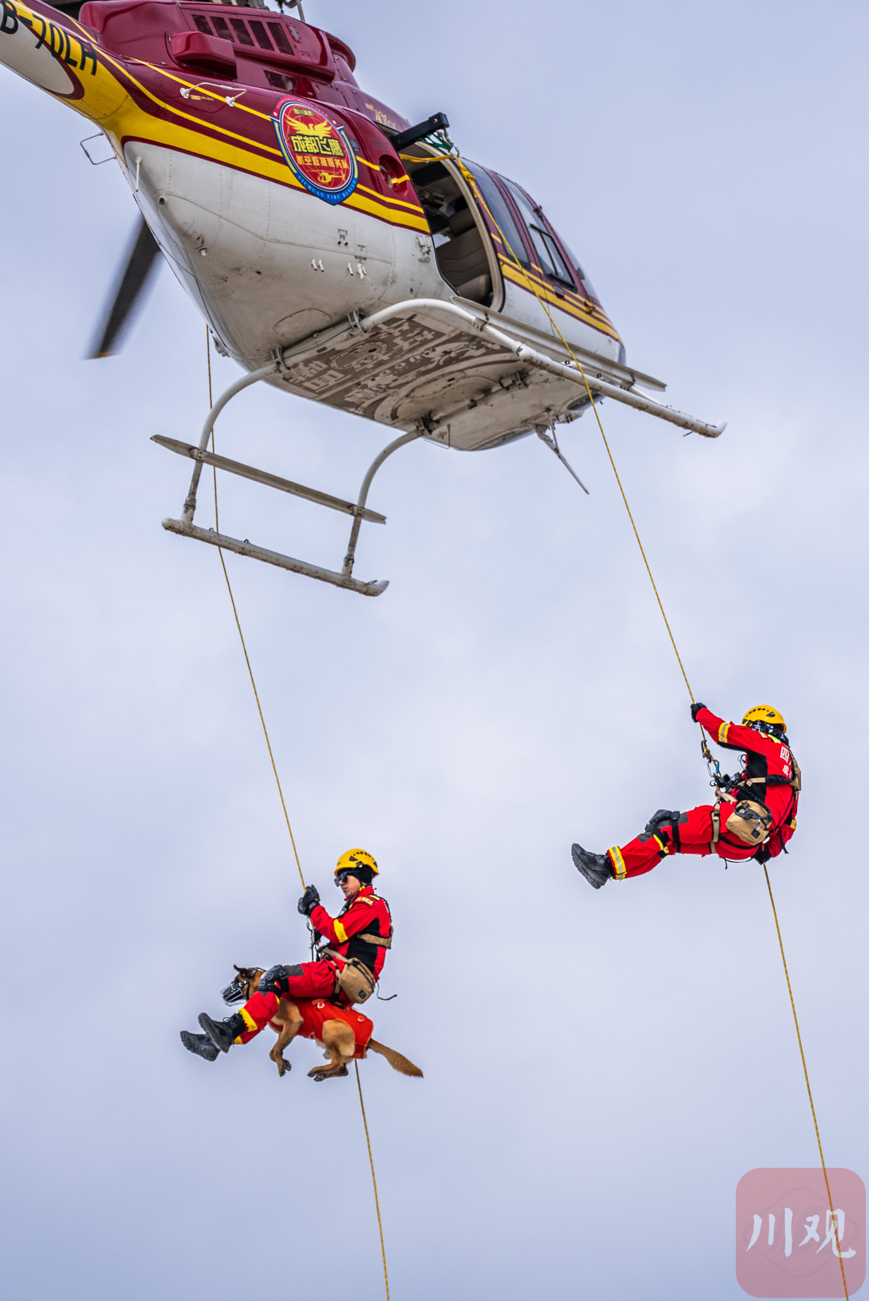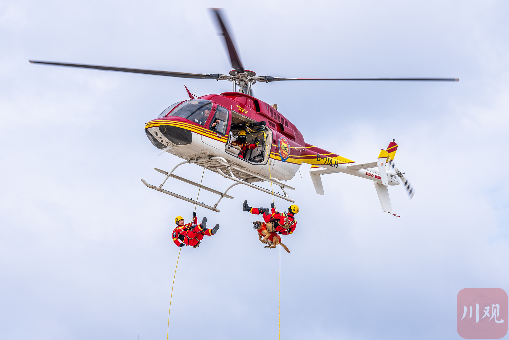 太燃了!多机悬停飞行、前突力量快速投放、人员带搜救犬索降、多场景绞车救援、地面指引吊桶灭火······
