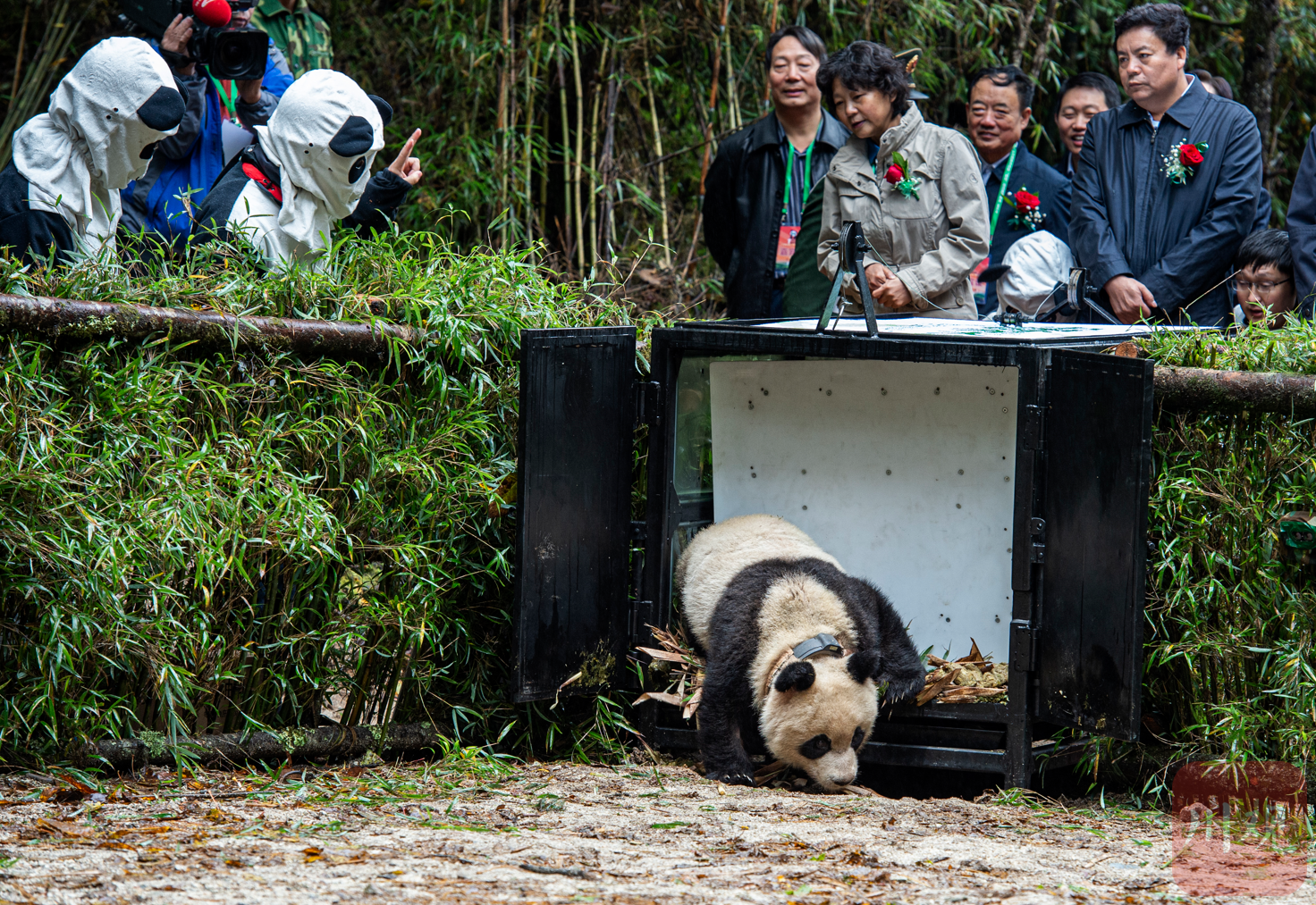 2012年10月11日,四川省雅安市石棉县栗子坪国家级自然保护区,全球首只野化大熊猫“淘淘”放归野外。