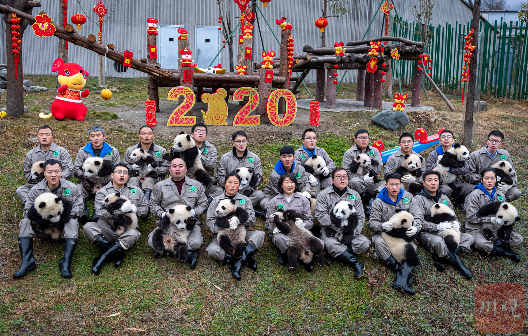 2020年1月17日,中国大熊猫保护研究中心神树坪基地,2019年出生的20只大熊猫集体亮相。