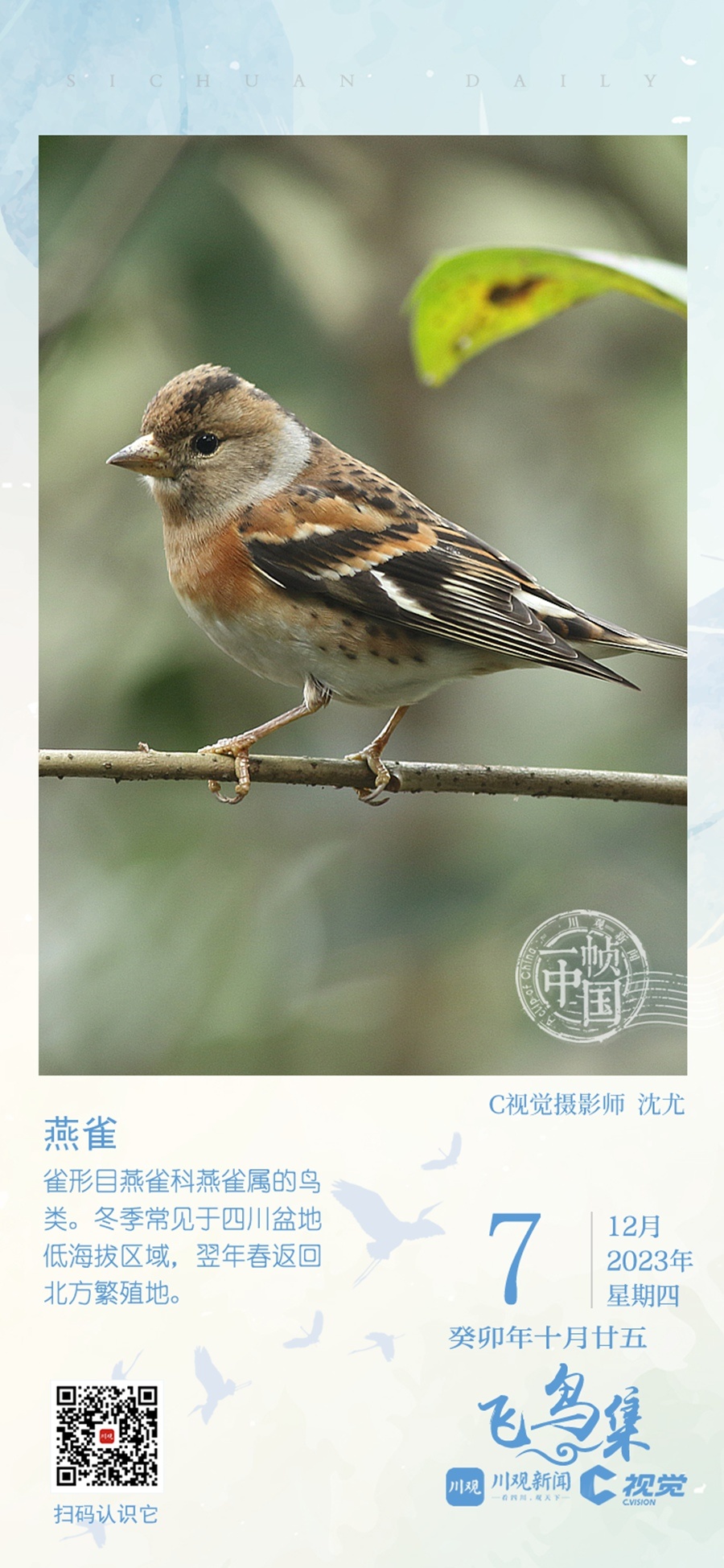 C视觉、川观新闻“一帧中国”专栏联合成都观鸟会发起“‘飞鸟集’影像全球招募计划”,征集冬候鸟在四川境内越冬的精彩影像图片,诚邀广大摄影爱好者投稿,展示你镜头记录飞羽之美,定格四川冬候鸟的美丽瞬间。