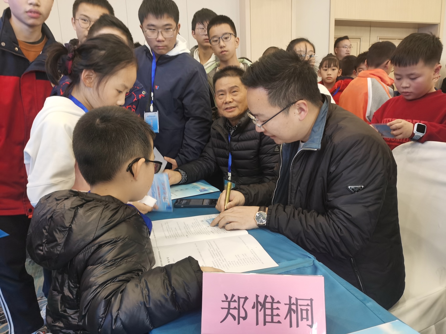赛事活动期间,还举行了四川省象棋特色学校(2023-2025)与2022年度四川省棋类教学先进单位的授牌和表彰仪式。值得一提的是,世界冠军、亚运会冠军、象棋特级大师郑惟桐,携新书《跬步探路》也在颁奖仪式中惊艳亮相,与大家分享了自己学棋和比赛的宝贵经验,受到了参赛棋手的热烈欢迎。小棋手们非常踊跃,争先恐后地加入到签名与合影环节,留下了十分美好的时光记忆。