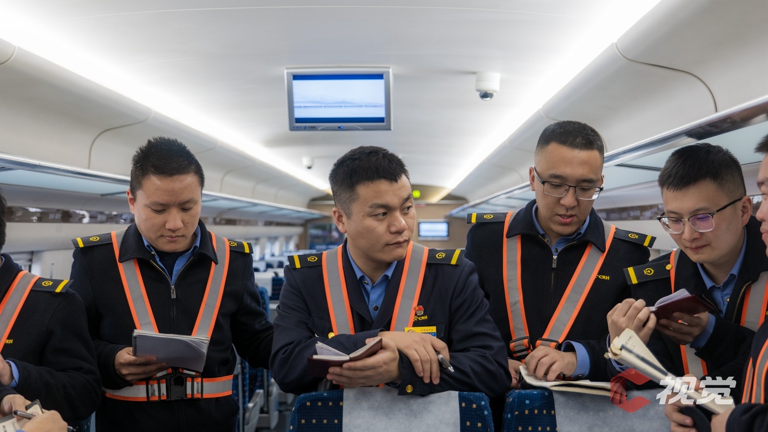 川青铁路上值乘CRH2G型高寒动车组的随车机械师们在讨论学习