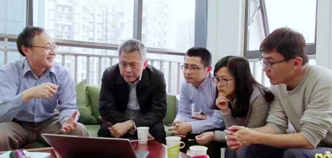 团队成员一起交流研讨科研课题。