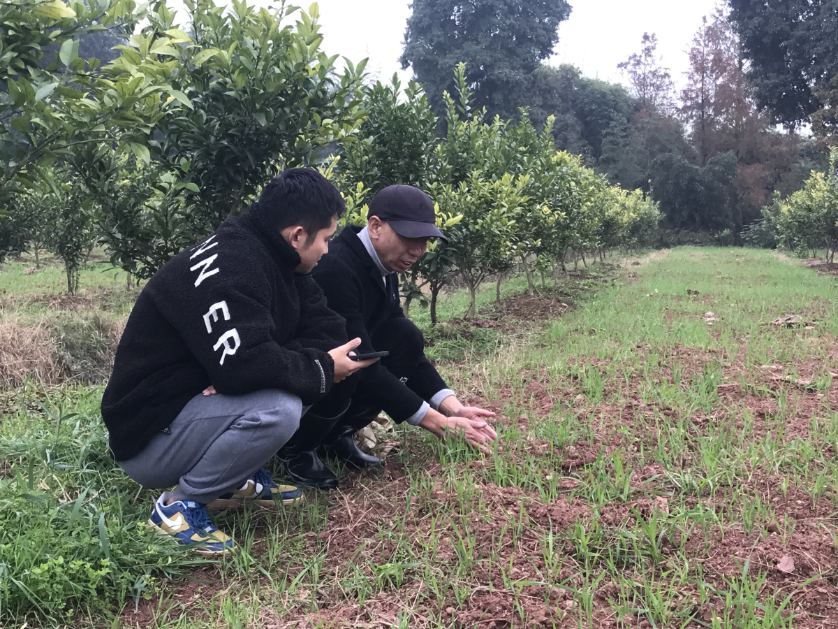 “我们的470亩柑橘园种的是阳光桔柚一号,还有一年才能投产,之前我们在行间套种过蔬菜和大豆。今年小春,听县农业农村局宣传说,套种小麦比较省事、能减少不少用工成本,我们就全部套种了他们推荐的‘川麦1247’。你看,我们之前就施足了底肥,11月4日撒播的,现在长得好好!”浩楠家庭农场负责人邓福霞说,“现在到了‘三叶一心’的时候了,今天县农业农村局的技术人员又来指导我们施‘断奶肥’了,还告诉我们如果在抽穗的时候发现麦子长势不好,还要施肥料,确保产量。”