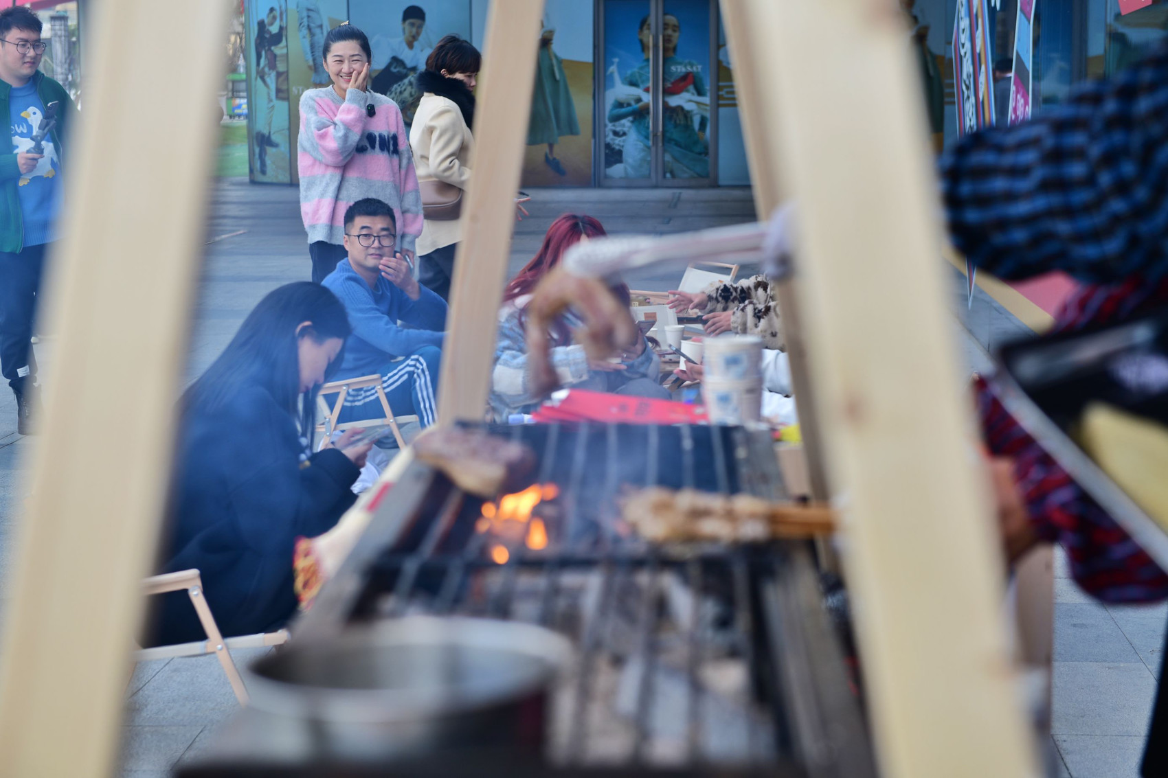 “凉仓”门前的广场上,工作人员烧烤车旁忙碌,正宗的西昌烧烤飘着浓郁的香气,旁边的桌椅围坐着许多当地的年轻人,点一杯咖啡、烤几串烧烤成为一种生活时尚。