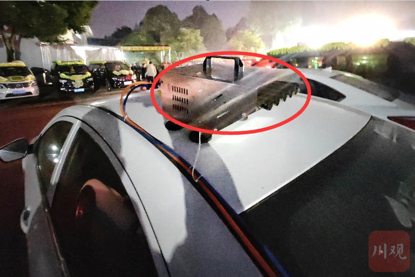 记者在崇州市蜀州殡仪馆目击了至少4辆装载有电子炮设施的车辆。
