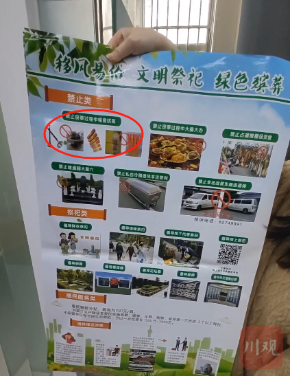 温江一社区的文明祭祀宣传海报中明确写有“禁止丧事过程中噪音扰民”。