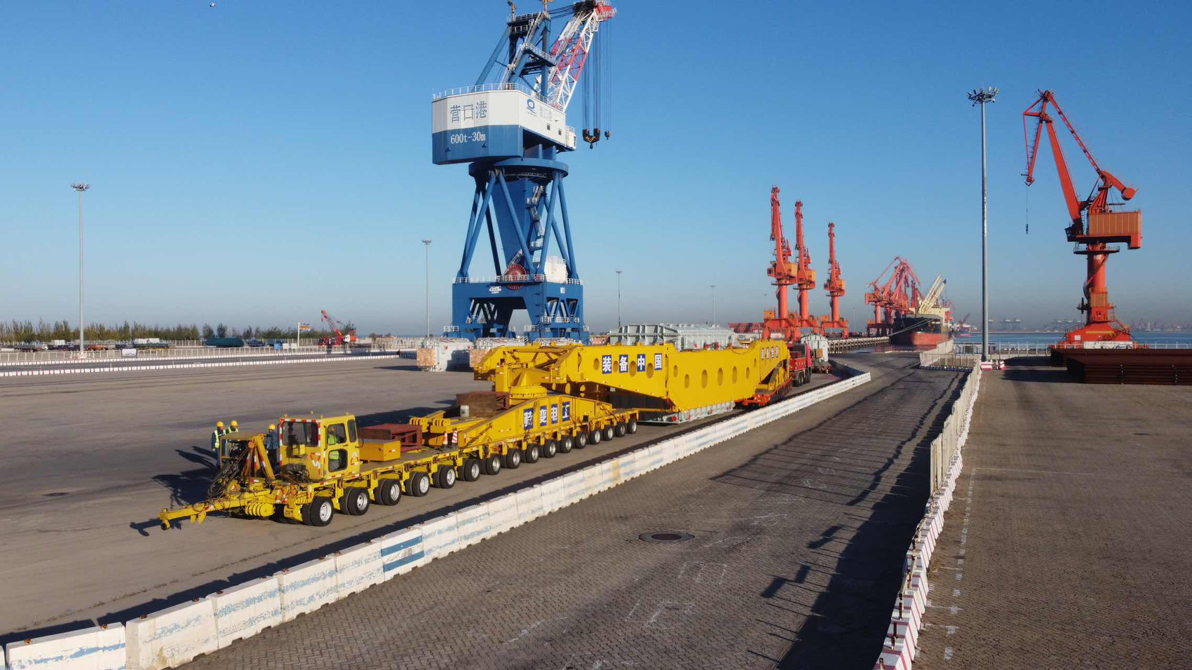 10月27日,主变压器到达营口鲅鱼圈3号码头,准备装船。
