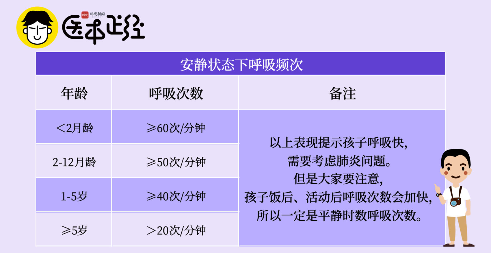 那么孩子呼吸多快才算快,记住下面这个表格: