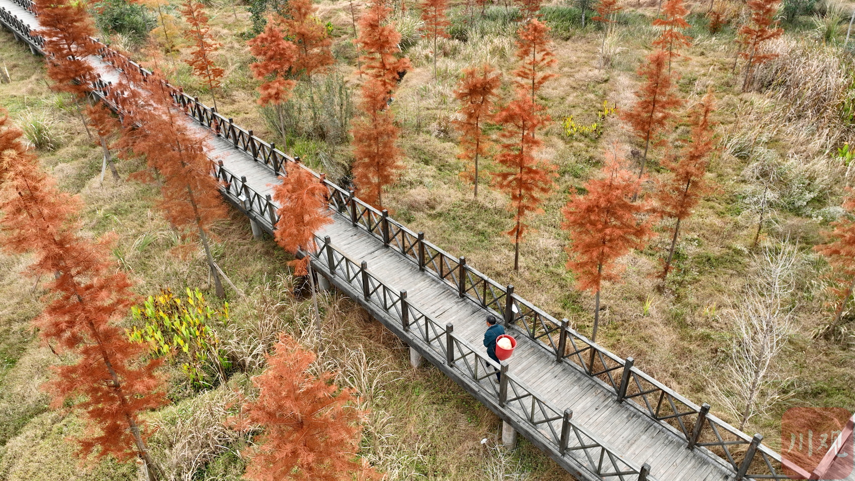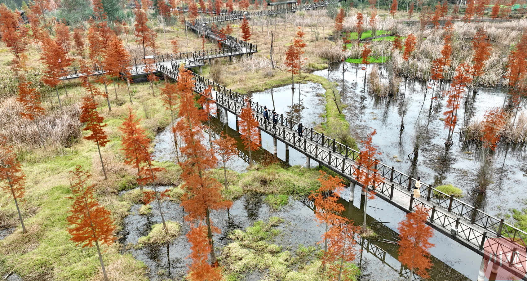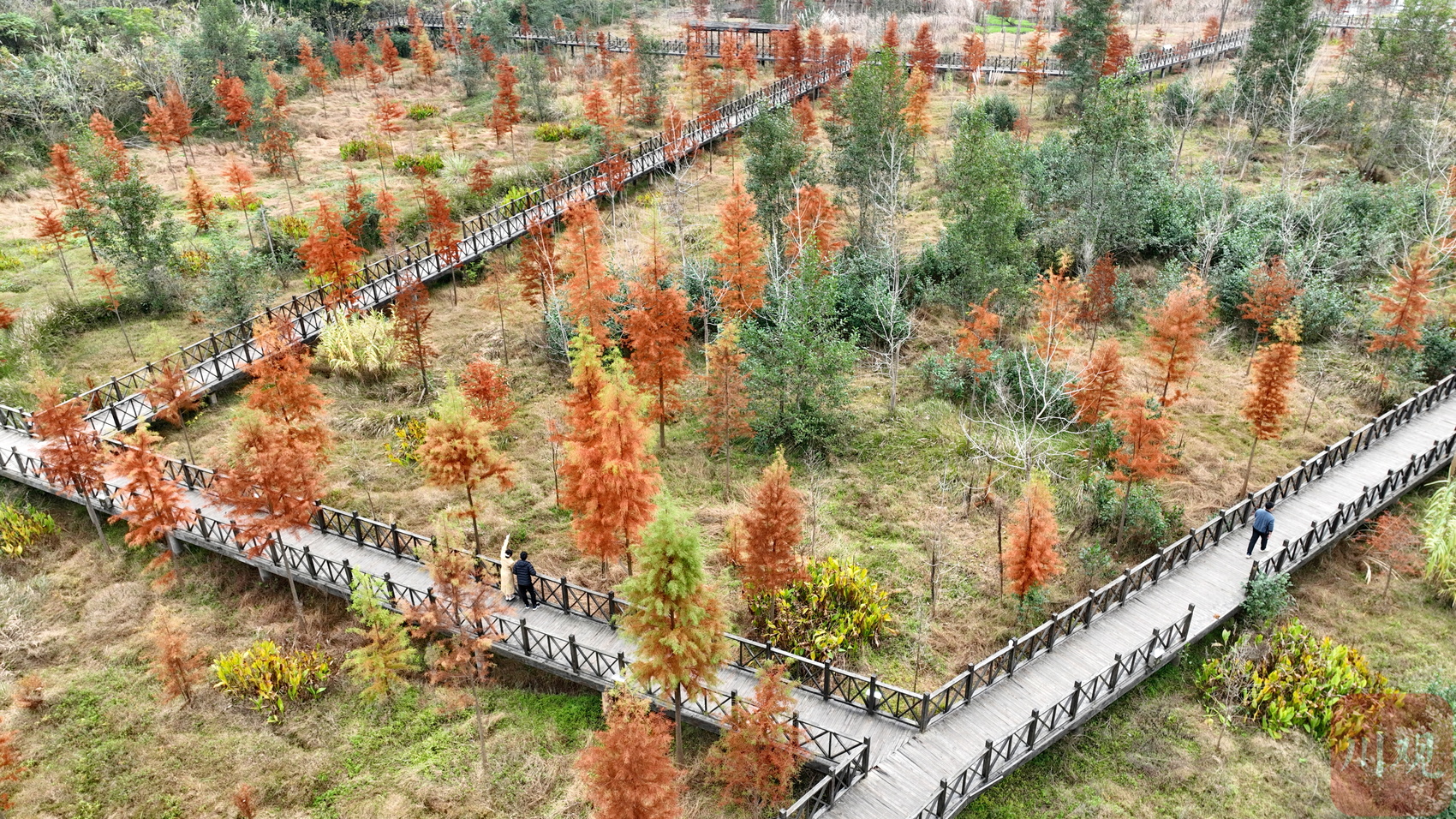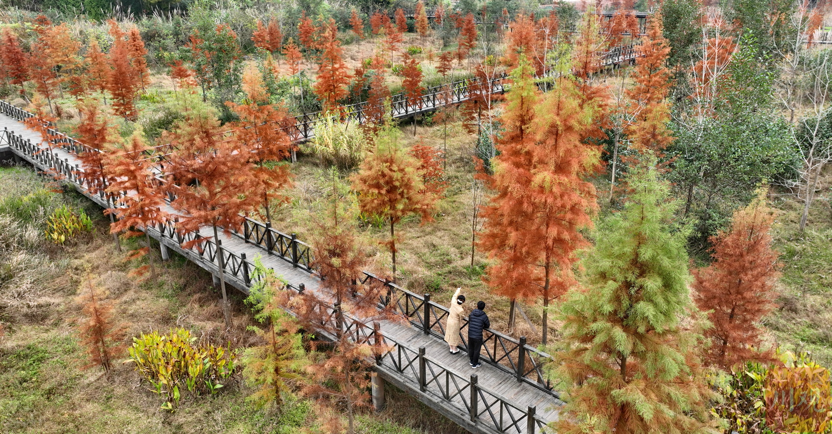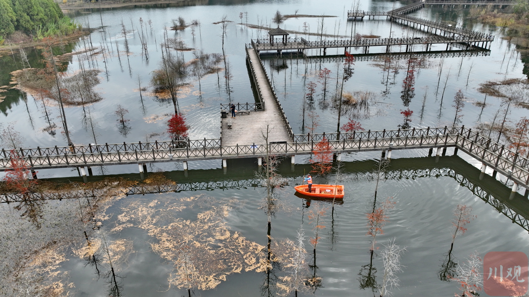 近日,四川省南充市营山县清水湖国家湿地公园内层林尽染,构成了一幅秀美的湿地生态系统景观图,尽享湿地生态之美。