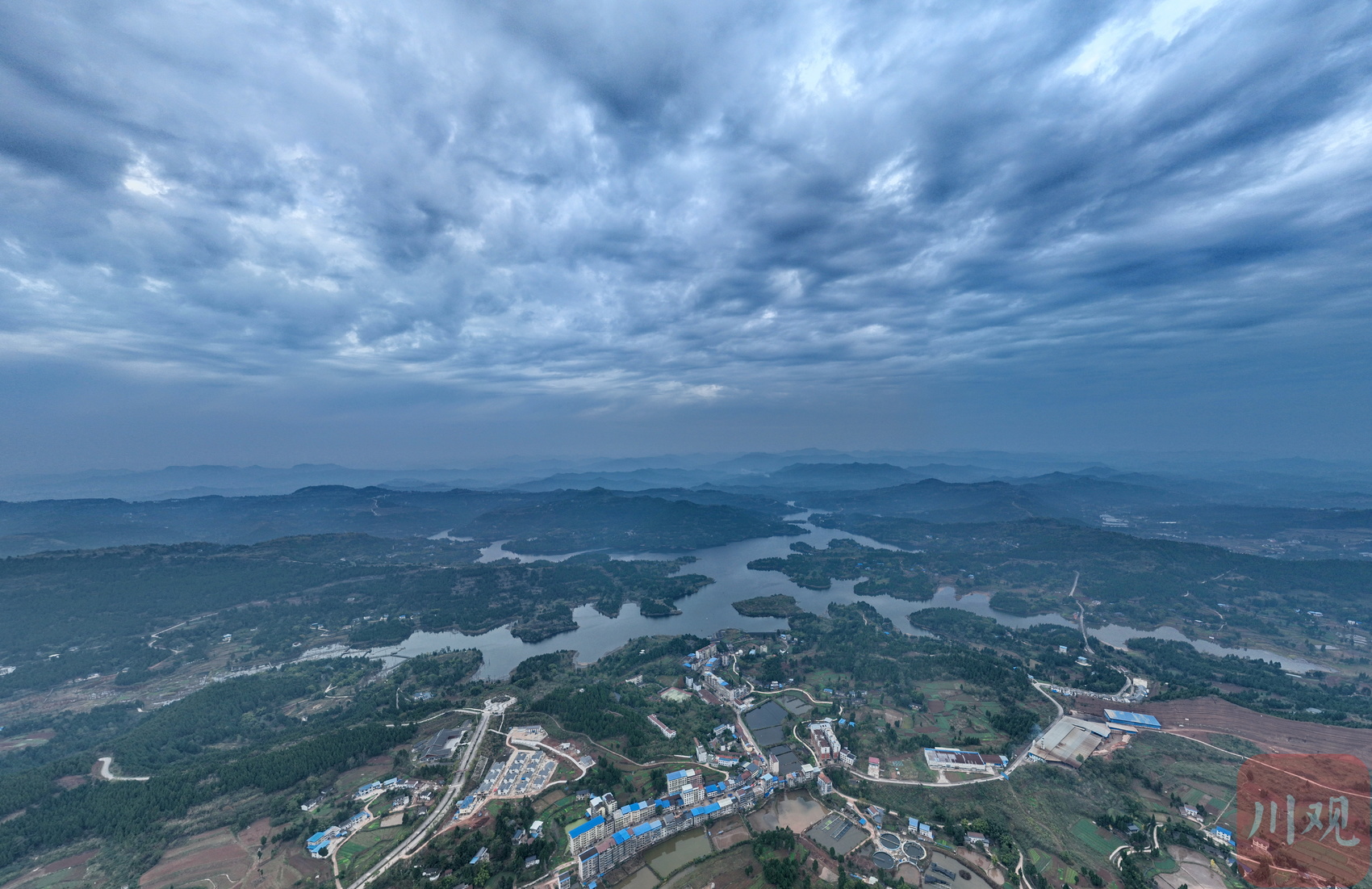 俯瞰南充市营山县清水湖国家湿地公园。