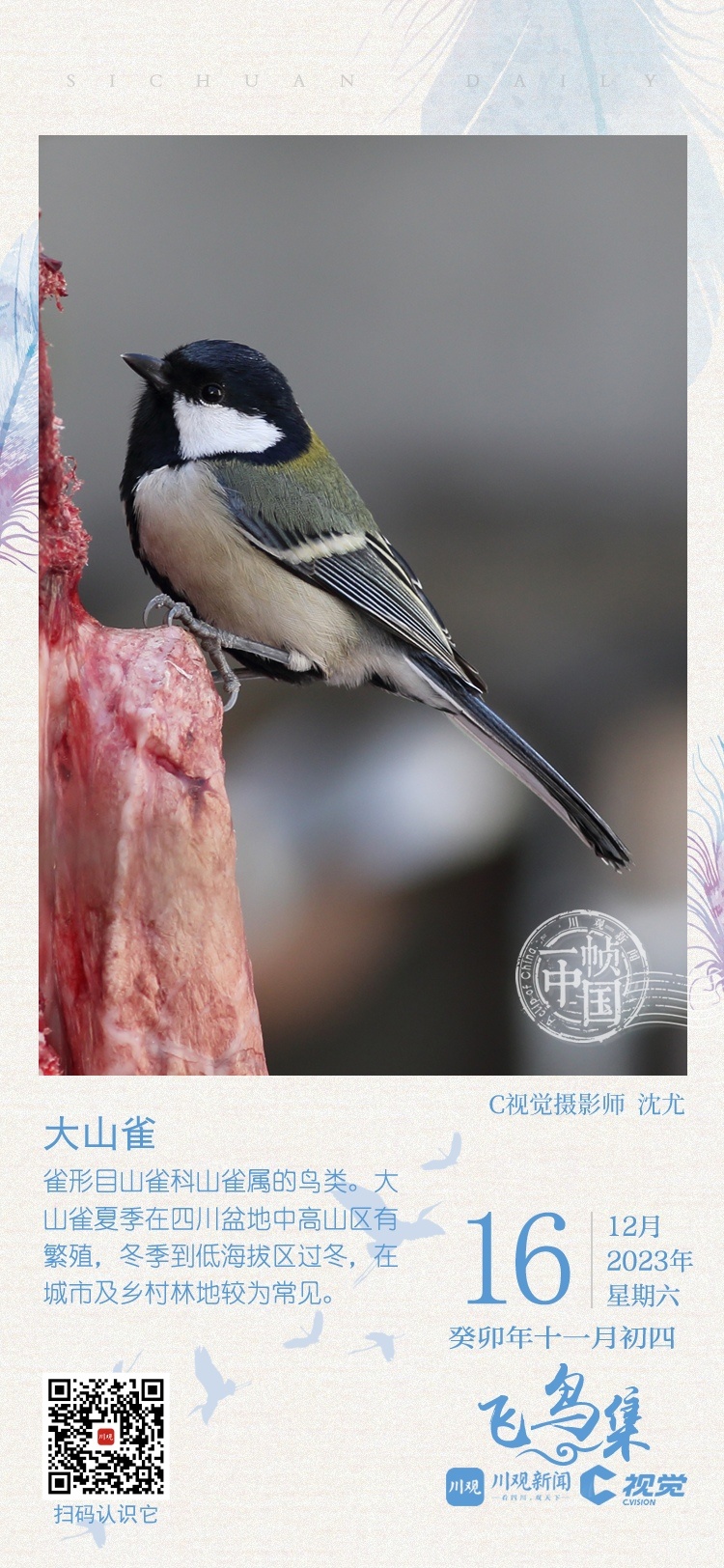 C视觉、川观新闻“一帧中国”专栏联合成都观鸟会发起“‘飞鸟集’影像全球招募计划”,征集冬候鸟在四川境内越冬的精彩影像图片,诚邀广大摄影爱好者投稿,展示你镜头记录飞羽之美,定格四川冬候鸟的美丽瞬间。